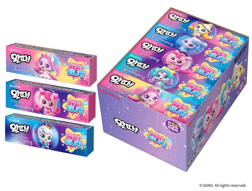 ▲ 롯데웰푸드[280360]는 풍선껌 제품 '왓따&캐치! 티니핑'을 선보였다. 포장은 SAMG엔터[419530]의 '캐치! 티니핑'의 캐릭터로 꾸몄고, 제품에 캐릭터 판박이 스티커를 넣었다.