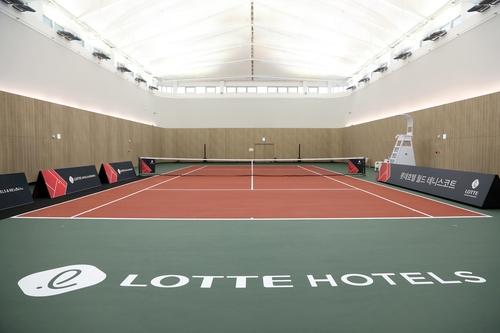 ▲ 롯데호텔 월드는 실내 테니스코트 오픈을 기념해 '에이스 스테이' 패키지를 내놨다. 실내 테니스코트 1시간 이용권과 함께 아메리칸 스포츠 브랜드 '윌슨'의 수건, 헤드·손목밴드 등을 주는 패키지다. 롯데호텔 월드의 테니스코트는 약 974㎡로 국제 규격을 갖췄다.