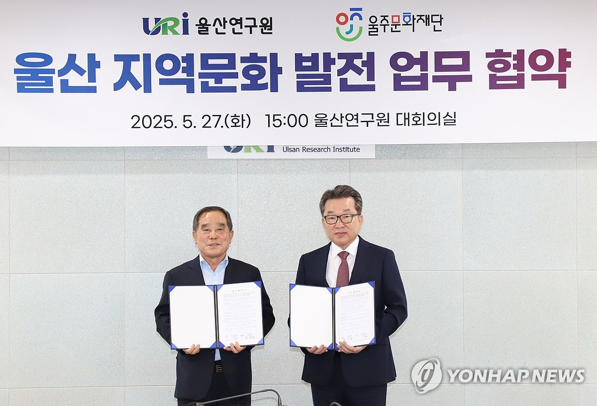 (울산=연합뉴스) 장영은 기자 = 울산 울주문화재단과 울산연구원은 27일 지역문화 발전과 공공정책 연계를 위한 업무협약(MOU)을 체결했다.