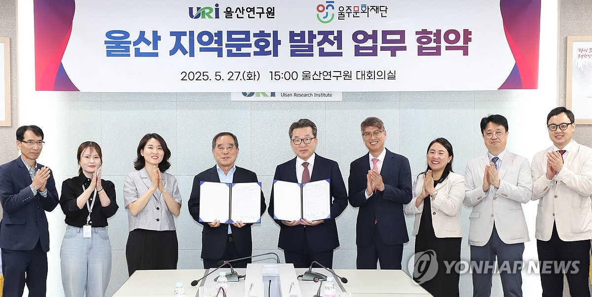 (울산=연합뉴스) 27일 울산 울주문화재단과 울산연구원이 지역문화 발전과 공공정책 연계를 위한 업무협약(MOU)을 체결했다.2025.5.27 [울주문화재단 제공.재판매 및 DB 금지] young@yna.co.kr