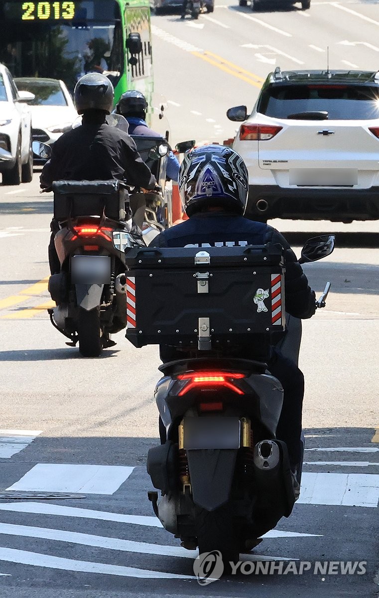 (서울=연합뉴스) 최재구 기자 = 배달 플랫폼 중개수수료와 배달료로 소상공인 자영업자들의 부담이 커지고 있다. 지난 25일 서울 시내에서 이동중인 배달 라이더들. 2025.5.25 jjaeck9@yna.co.kr