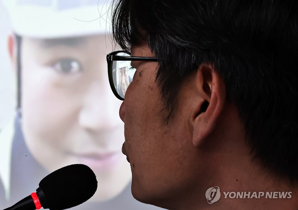 (서울=연합뉴스) 윤동진 기자 = 5일 서울 참여연대에서 열린 '태안화력 비정규직 노동자 고 김충현 사망사고 1차 조사발표 기자간담회'에서 최진일 대책위 상황실장이 1차 사고조사 발표를 하고 있다.