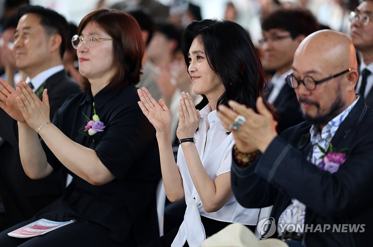 (서울=연합뉴스) 윤동진 기자 = 이부진 한국방문위원장을 비롯한 내빈들이 19일 동대문디자인플라자에서 열린 코리아뷰티페스티벌 개막식에서 박수를 치고 있다. 2025.6.19 mon@yna.co.kr