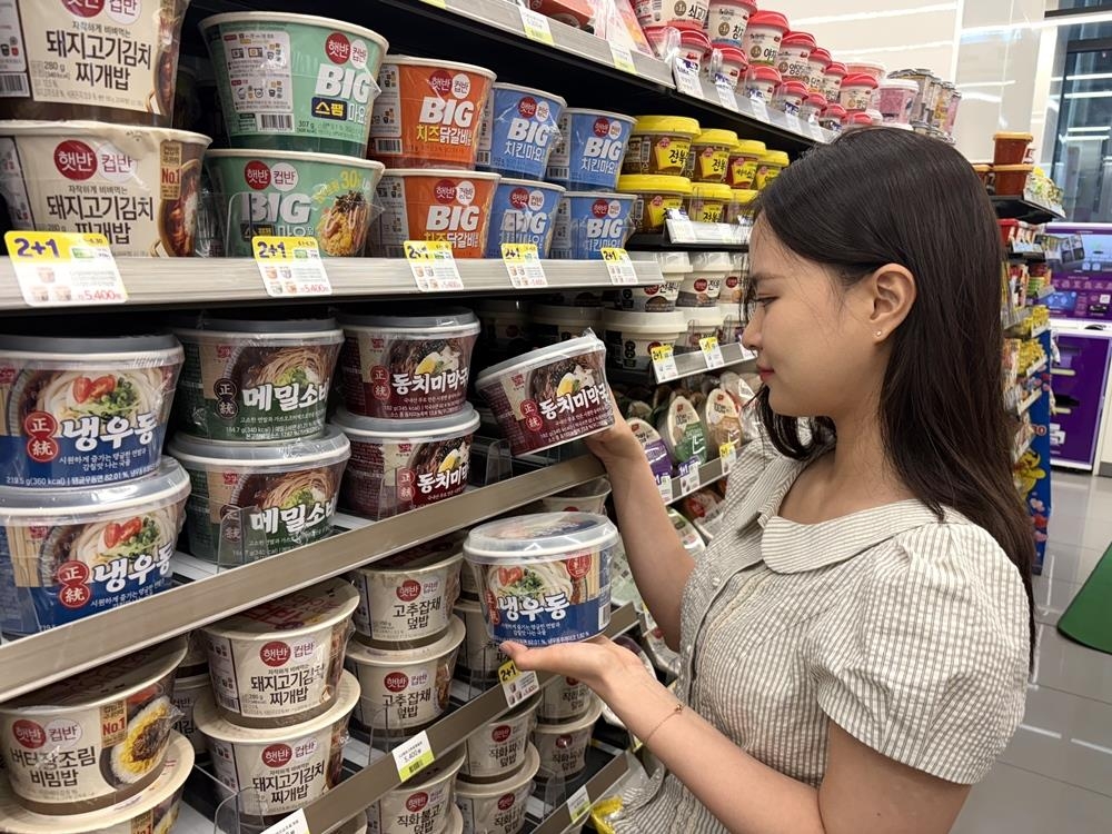 CU는 최근 낮 기온이 평균 30도를 넘어가면서 면 제품을 찾는 고객이 늘고 있다며 매콤 명란 우동과 들기름 막국수, 메밀소바 등 차별화 제품이 인기를 끈다고 전했다.