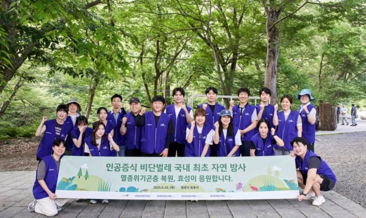 효성은 지난 19∼20일 경남 밀양 표충사 일대에서 ㈜효성, 효성티앤씨㈜, 효성중공업㈜ 소속 임직원 20여명이 참여한 가운데 비단벌레 방사 행사를 했다고 23일 밝혔다.