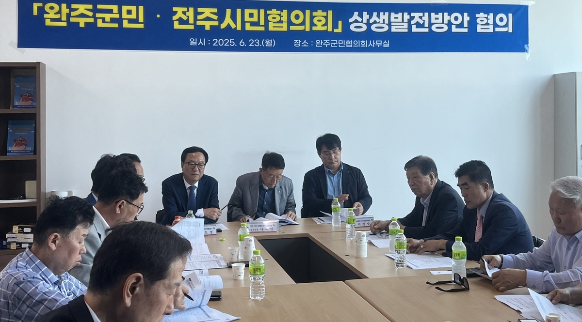 이들 협의회는 23일 완주군 삼례읍 군민협의회 사무실에서 양 협의회 위원장과 분과위원장들이 참여한 가운데 완주·전주 상생발전방안에 대한 첫 회의를 개최했다.