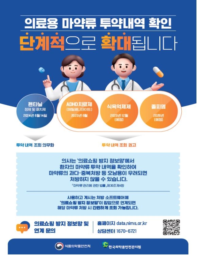 의사·치과의사가 의료기관의 처방 소프트웨어를 사용해 의료용 마약류 처방을 진행하면 마약류통합관리스템과 연계돼 자동 알림창(팝업창)으로 환자의 과거 1년간 투약 이력을 확인할 수 있다. 한국의약품안전관리원의 기술 지원으로 지난해 ADHD 치료제 처방 이력이 있는 5천13개 병원 중 약 60%인 3천148개 병원에서 자동 팝업 기능이 도입된 처방 소프트웨어를 사용 중이다.