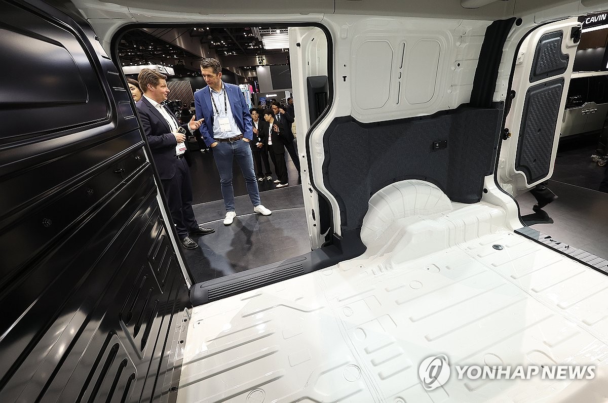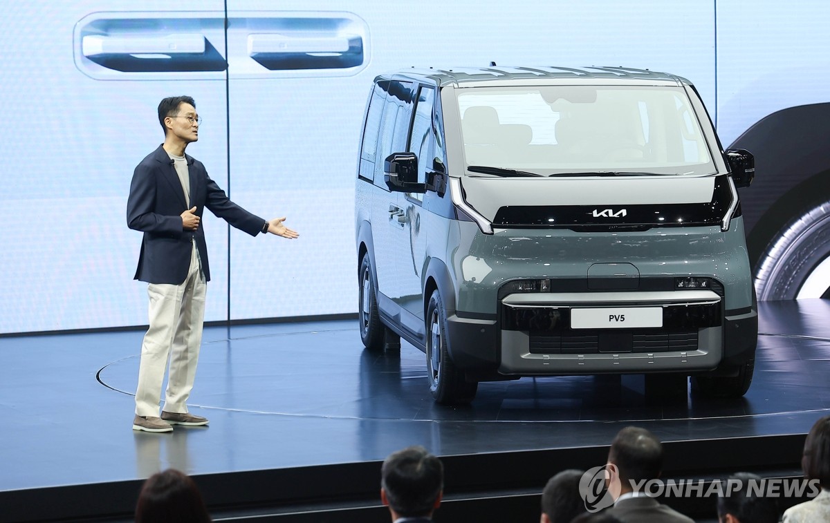 (고양=연합뉴스) 김성민 기자 = 3일 경기 고양시 킨텍스에서 열린 '2025 서울모빌리티쇼' 미디어 데이 행사에 기아차 PV5가 전시돼 있다.