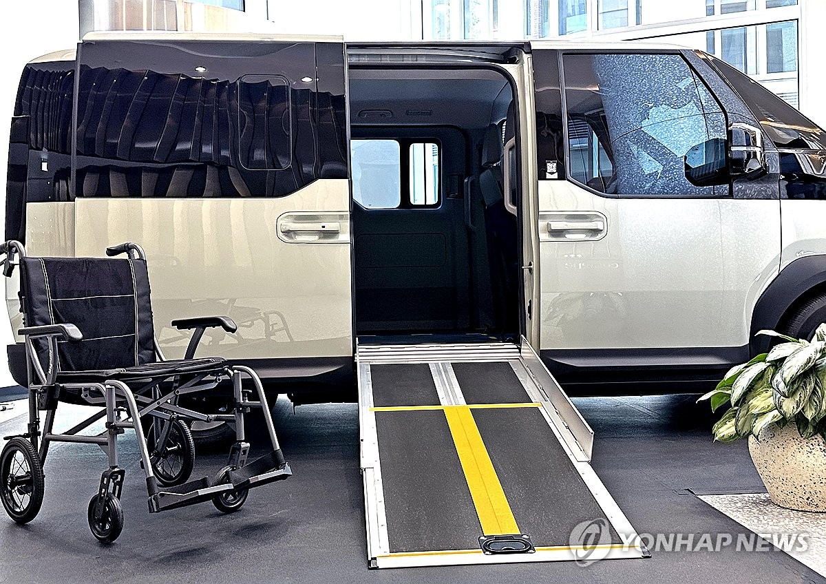 (서울=연합뉴스) 기아가 영국 런던에서 13일(현지시간) 열린 글로벌 완성차 업계 리더급 포럼 및 전시 행사 '퓨처 오브 더 카 서밋'에서 PV5 WAV(휠체어용 차량) 모델을 선보였다고 밝혔다. 사진은 퓨처 오브 더 카 서밋 현장에 전시된 PV5 WAV 모델. 2025.5.13 [현대차·기아 제공. 재판매 및 DB 금지] photo@yna.co.kr
