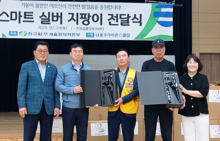 남울주라이온스클럽 회원과 각 마을 이장이 거동이 불편한 어르신들을 방문해 이 지팡이를 전달할 계획이다.