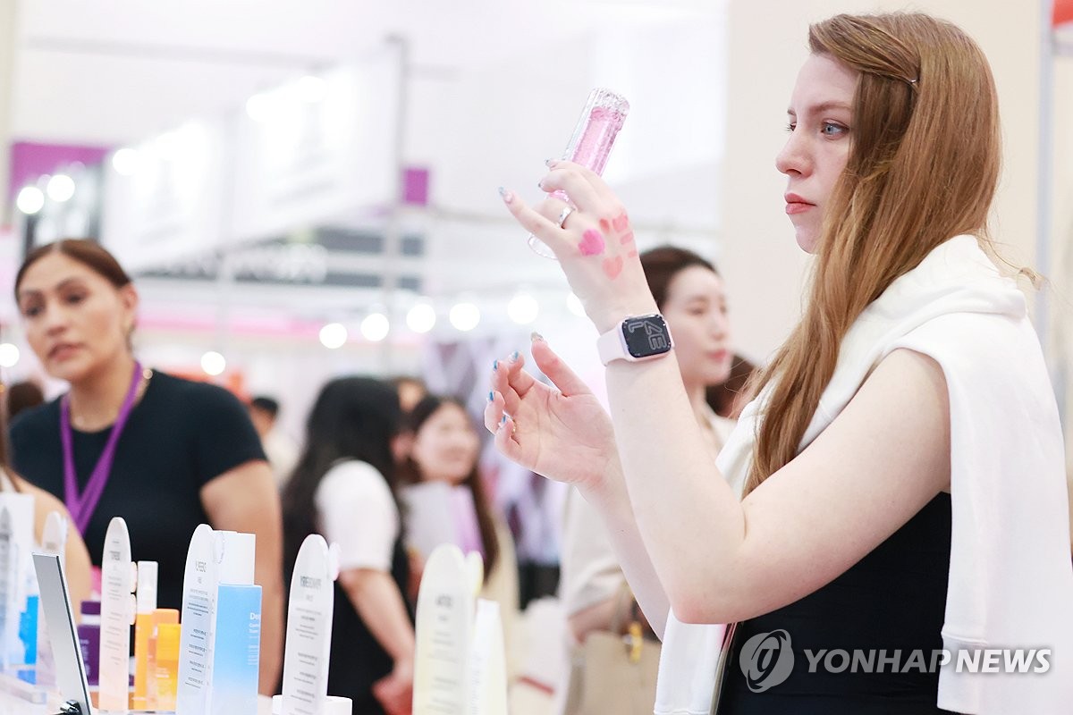 (서울=연합뉴스) 진연수 기자 = 28일 서울 강남구 코엑스에서 열린 2025 서울국제화장품미용산업박람회 및 국제건강산업박람회를 찾은 외국인 바이어가 제품을 살펴보고 있다. 2025.5.28 jin90@yna.co.kr