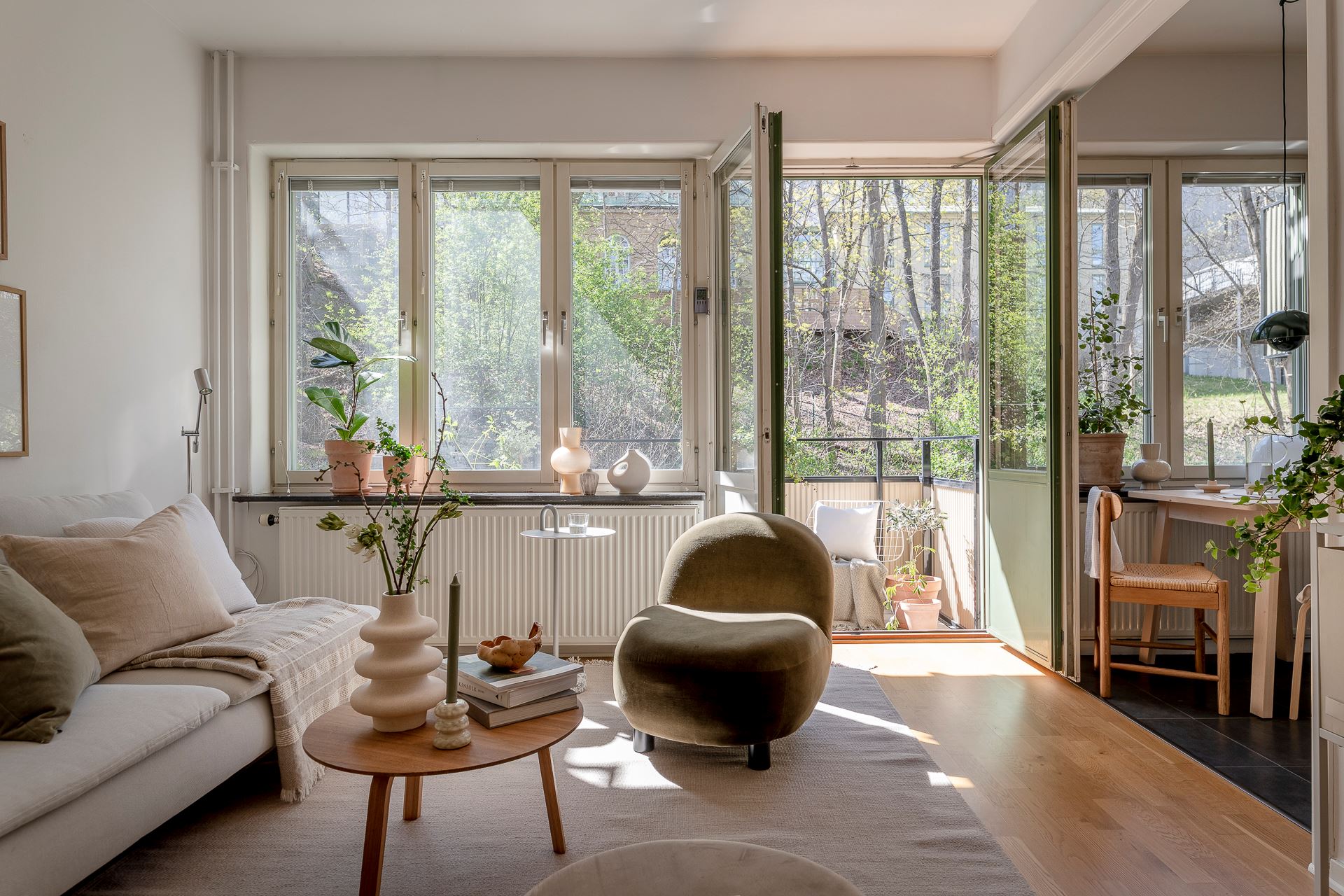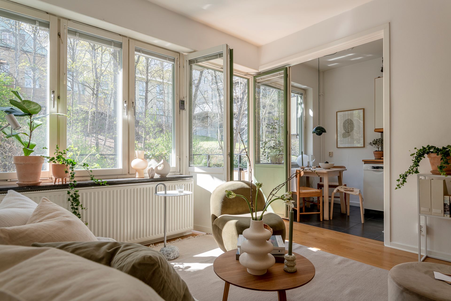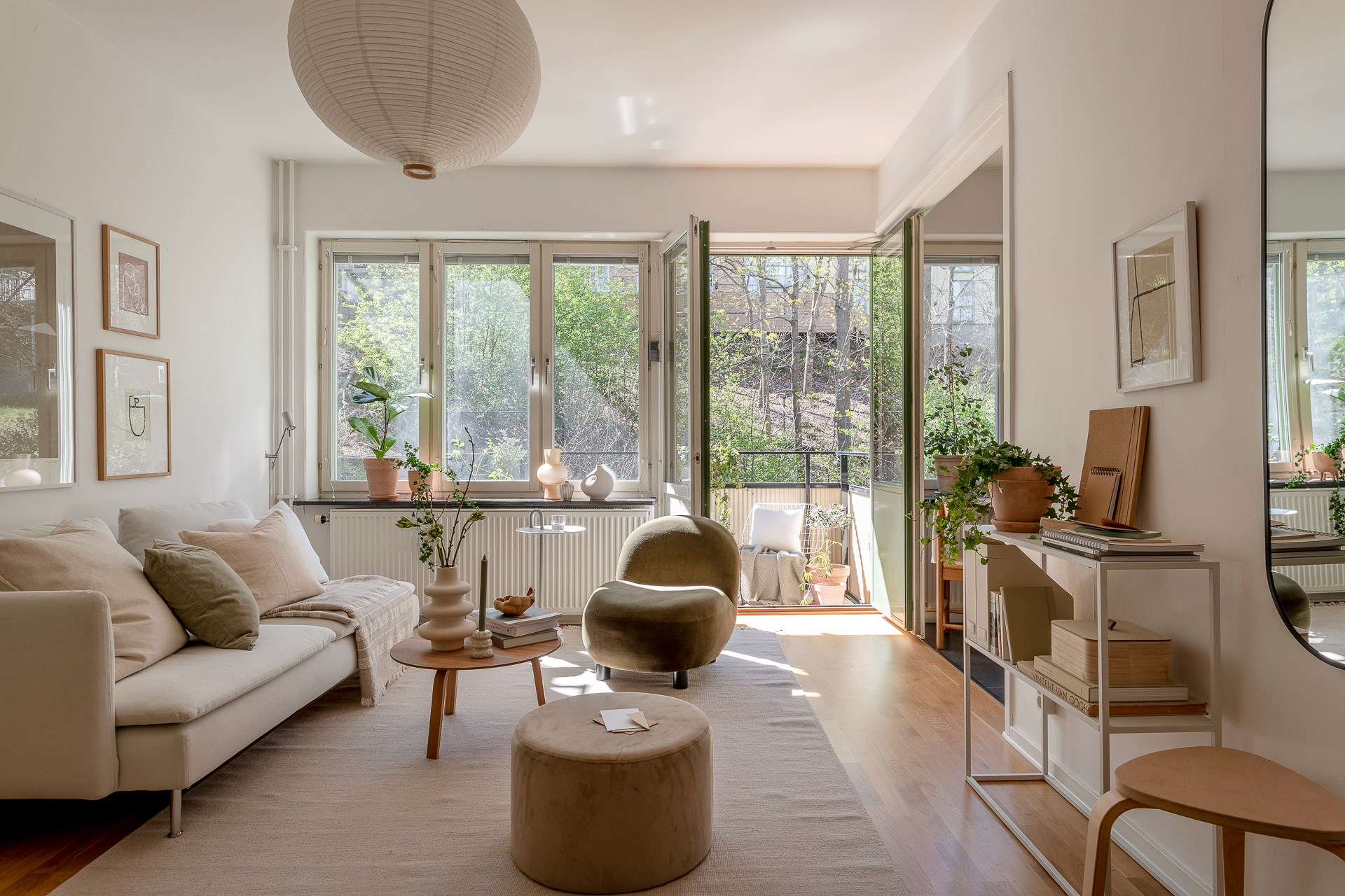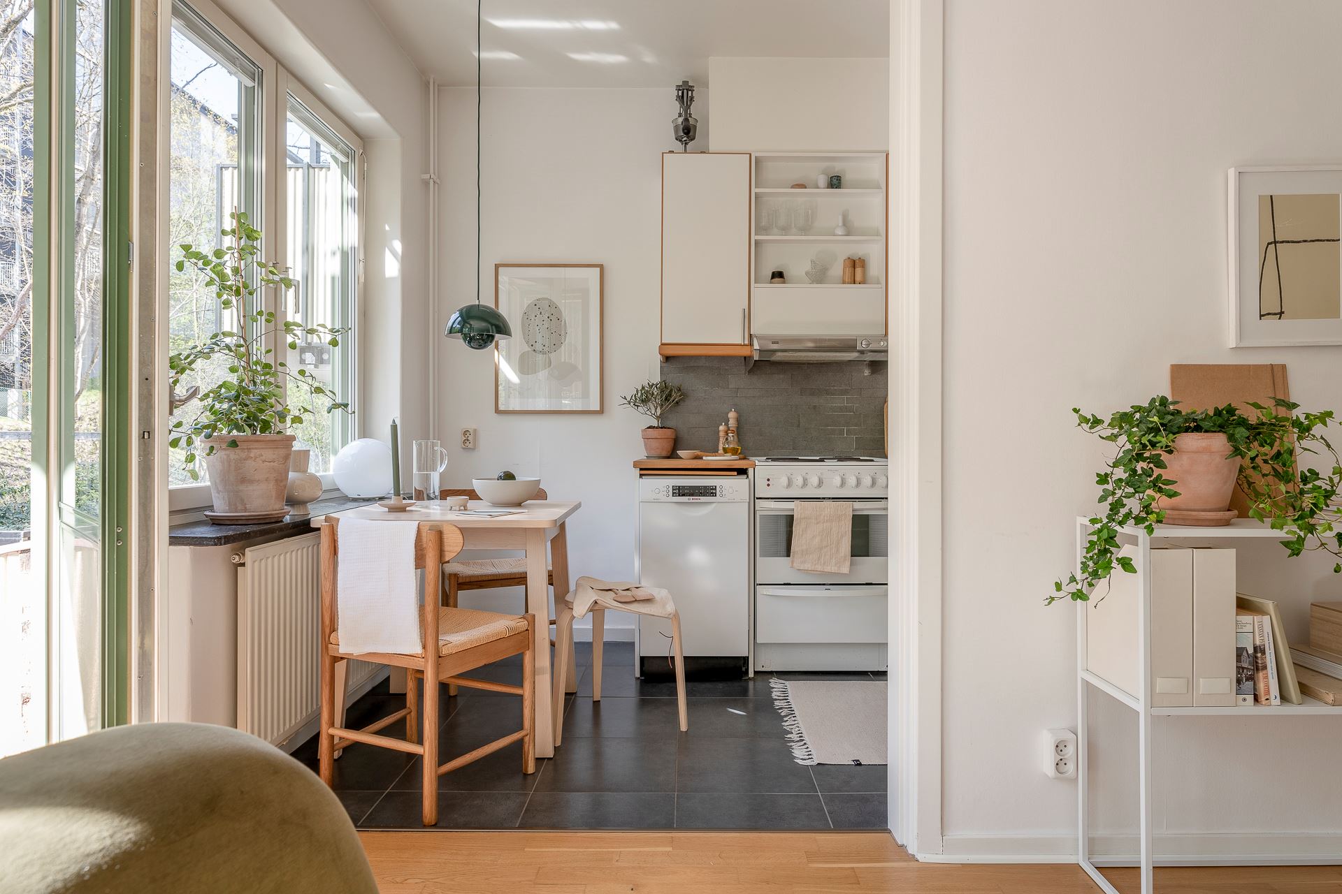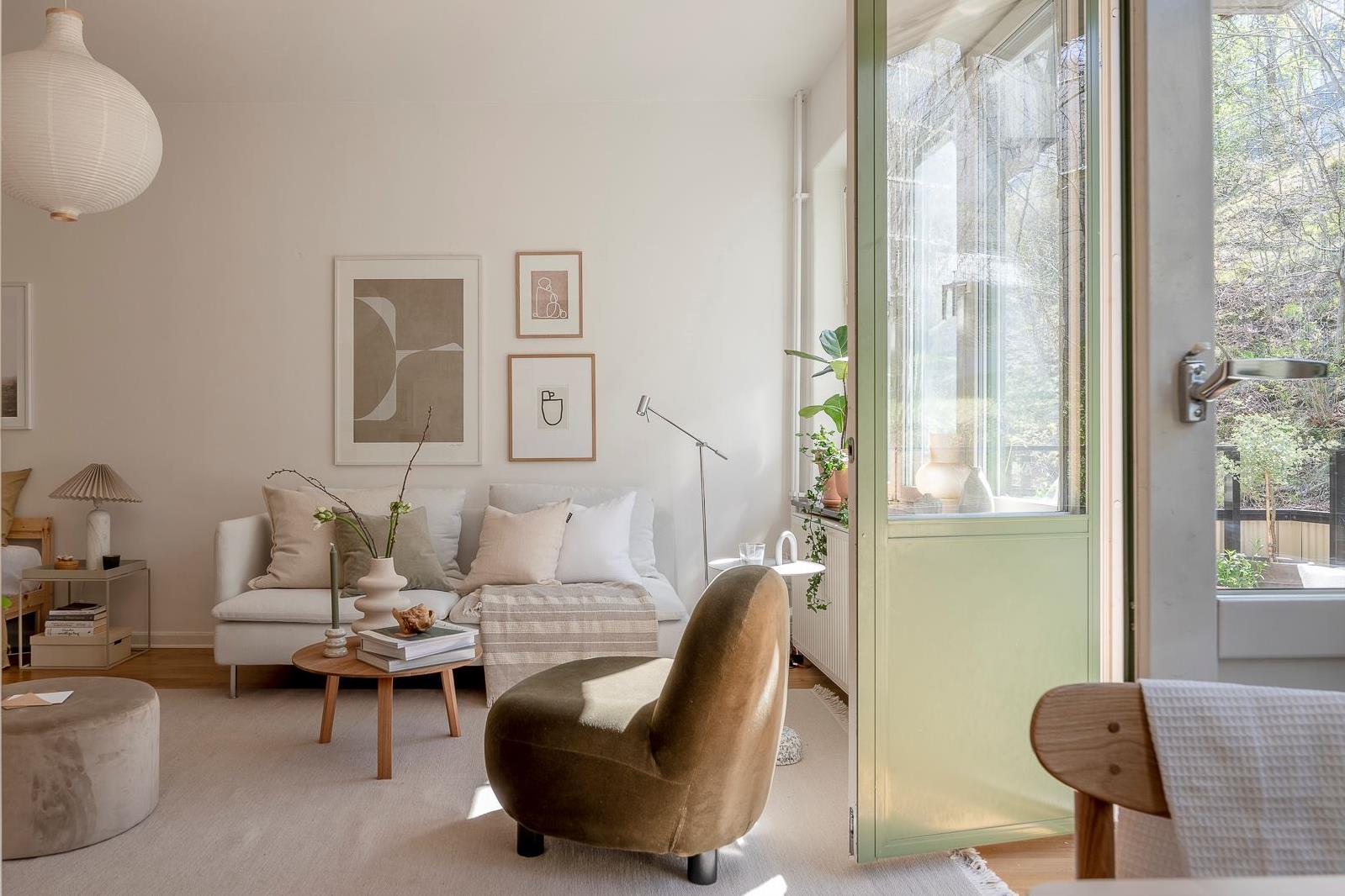 특히, 북유럽 디자이너 가구와 조명, 오브제들로 아기자기하게 꾸며진 아담한 거실의 경우 다채로운 액자들과 싱그러운 화초들로 감각적인 포인트를 줘 아름다운 노르딕 거실을 연출하고 있다.