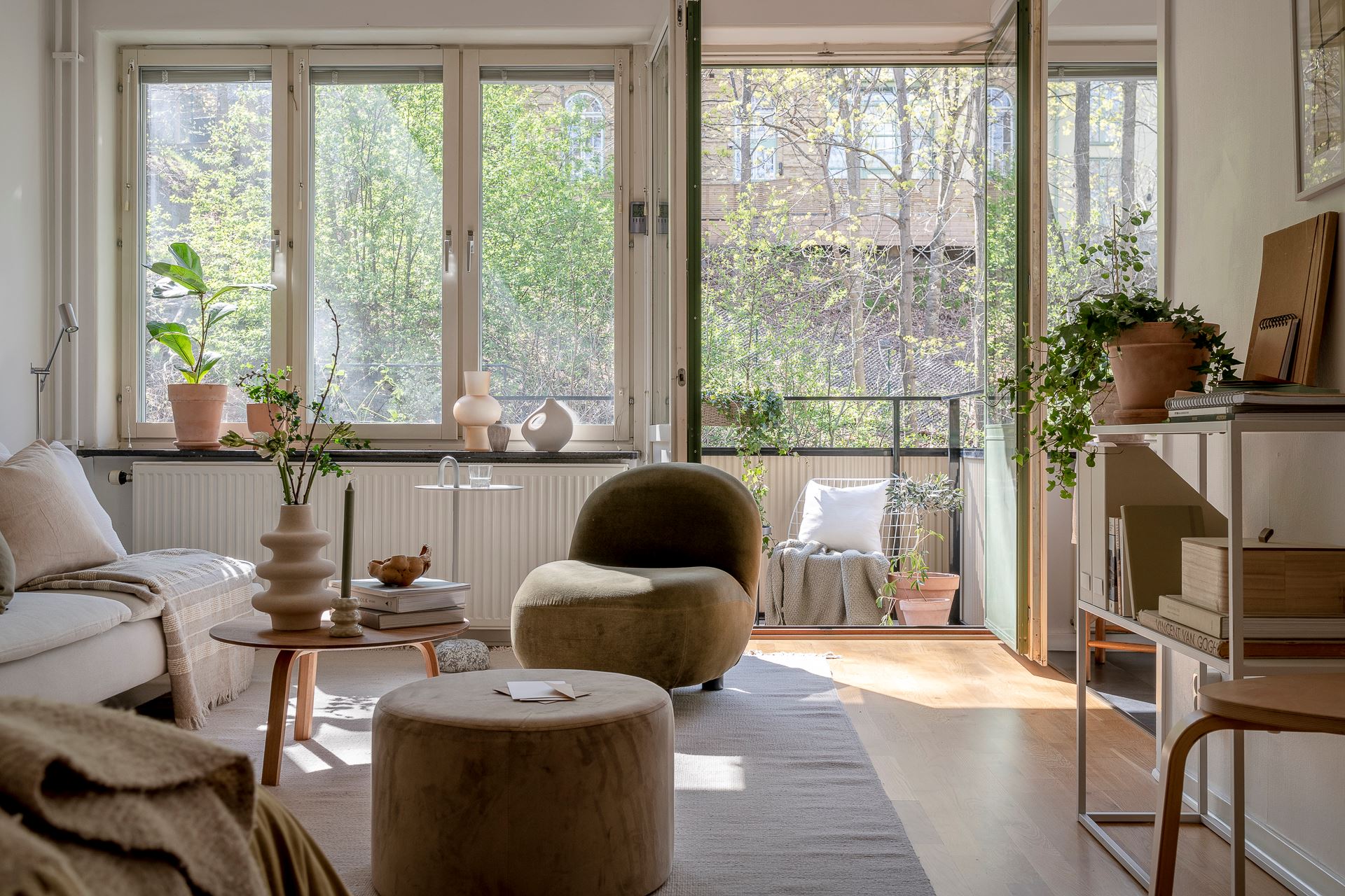 대형 창문을 통해 들어오는 따스한 햇살과 상쾌한 바람으로 사시사철 밝고 쾌적한 공간을 유지하고 있는 이 집은 거실 겸 침실, 주방, 욕실, 홀, 현관으로 구성된 소형 아파트로, 제한된 공간을 짜임새 있는 활용한 공간 스타일링이 특히 돋보인다.
