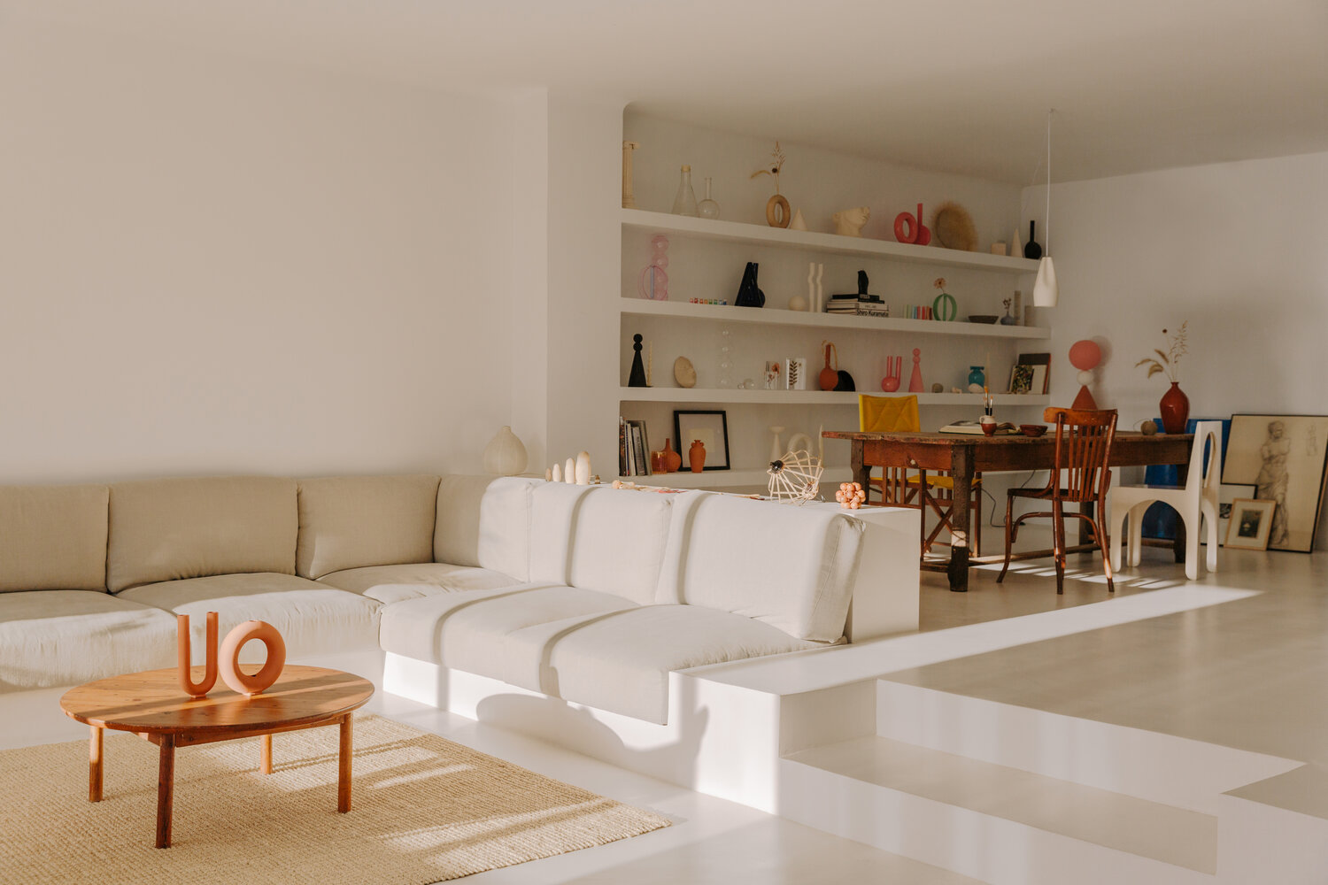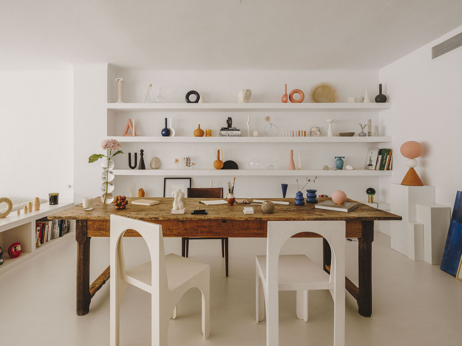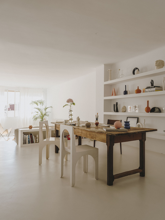 지중해 지역 특유의 낭만과 여유를 느낄 수 있는 매력적인 공간 디자인이 돋보이는 서재 겸 홈 오피스, 작업 공간은 디자이너 부부의 영감을 일깨우는 다채로운 오브제들을 감각적으로 배치해 공간의 아름다움을 극대화하고 있다.