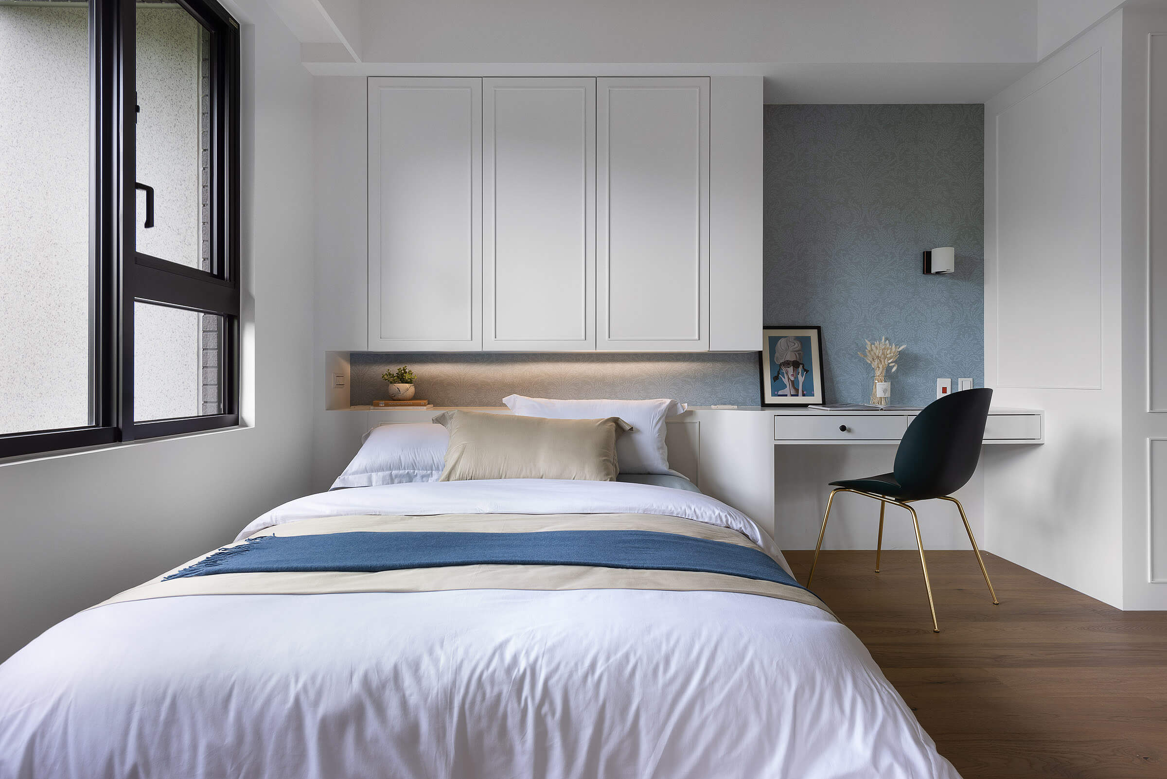전체 공간과 조화로운 고급스러운 디자인의 빌트인 가구로 꾸며진 마스터 침실은 집주인을 위한 아늑하고 편안한 프라이빗 공간으로 디자인되어 만족스러운 일상을 선사한다.
