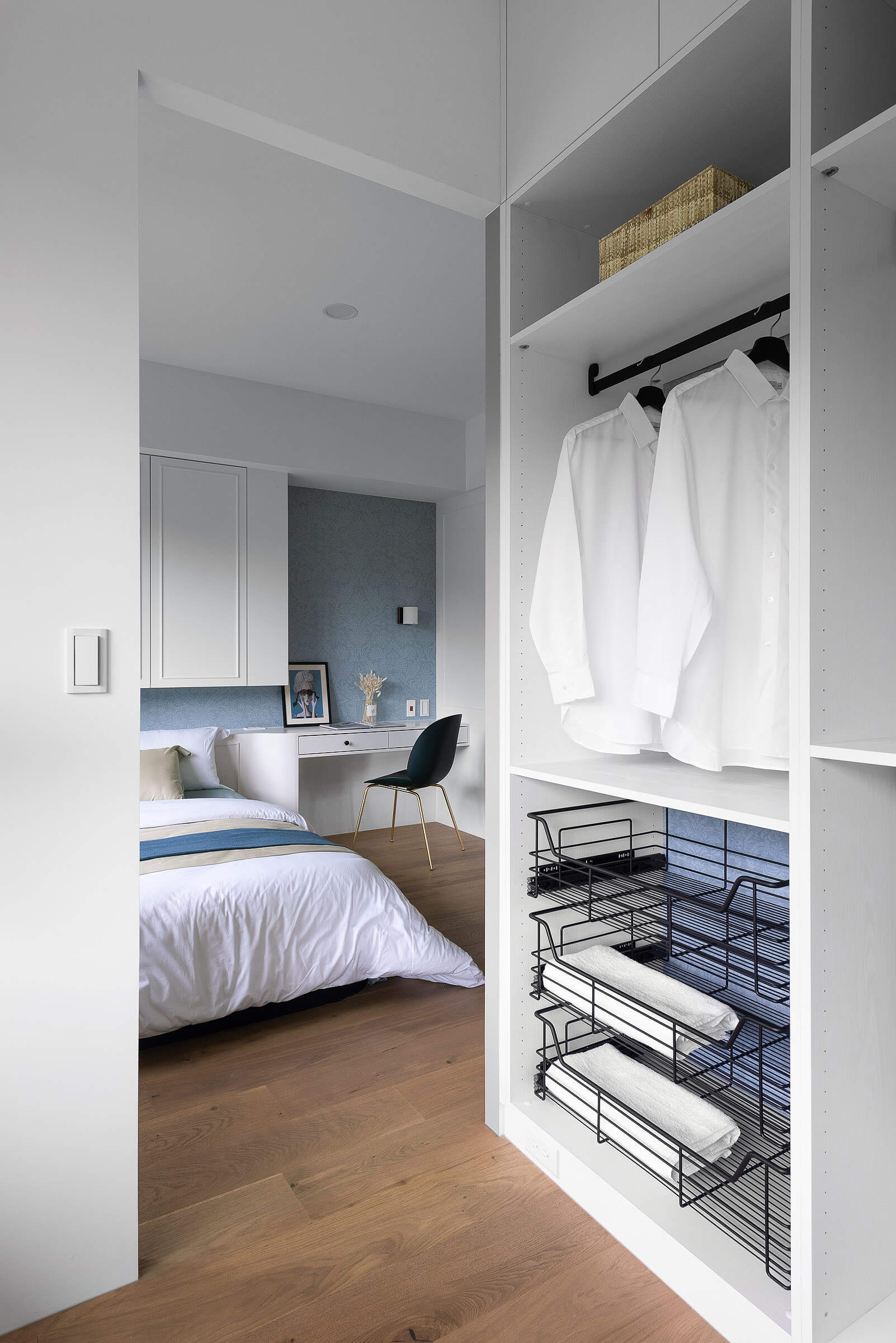 다양한 수납공간이 배치된 마스터 전용 드레스룸은 각종 의류 수납을 효율적으로 해결해 줘 침실 공간을 보다 깔끔하게 유지, 관리할 수 있도록 도와준다.