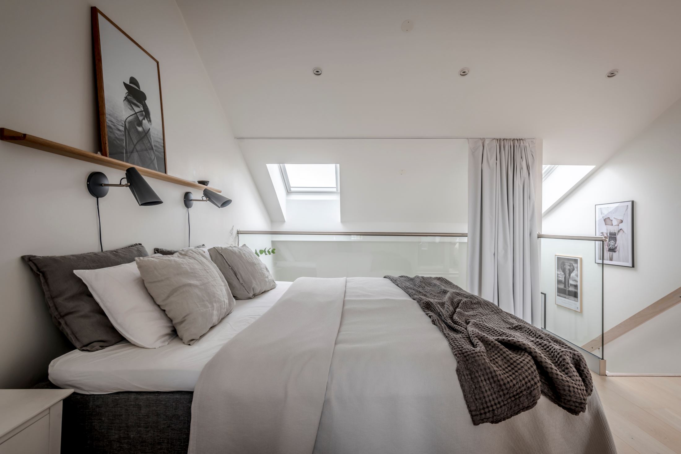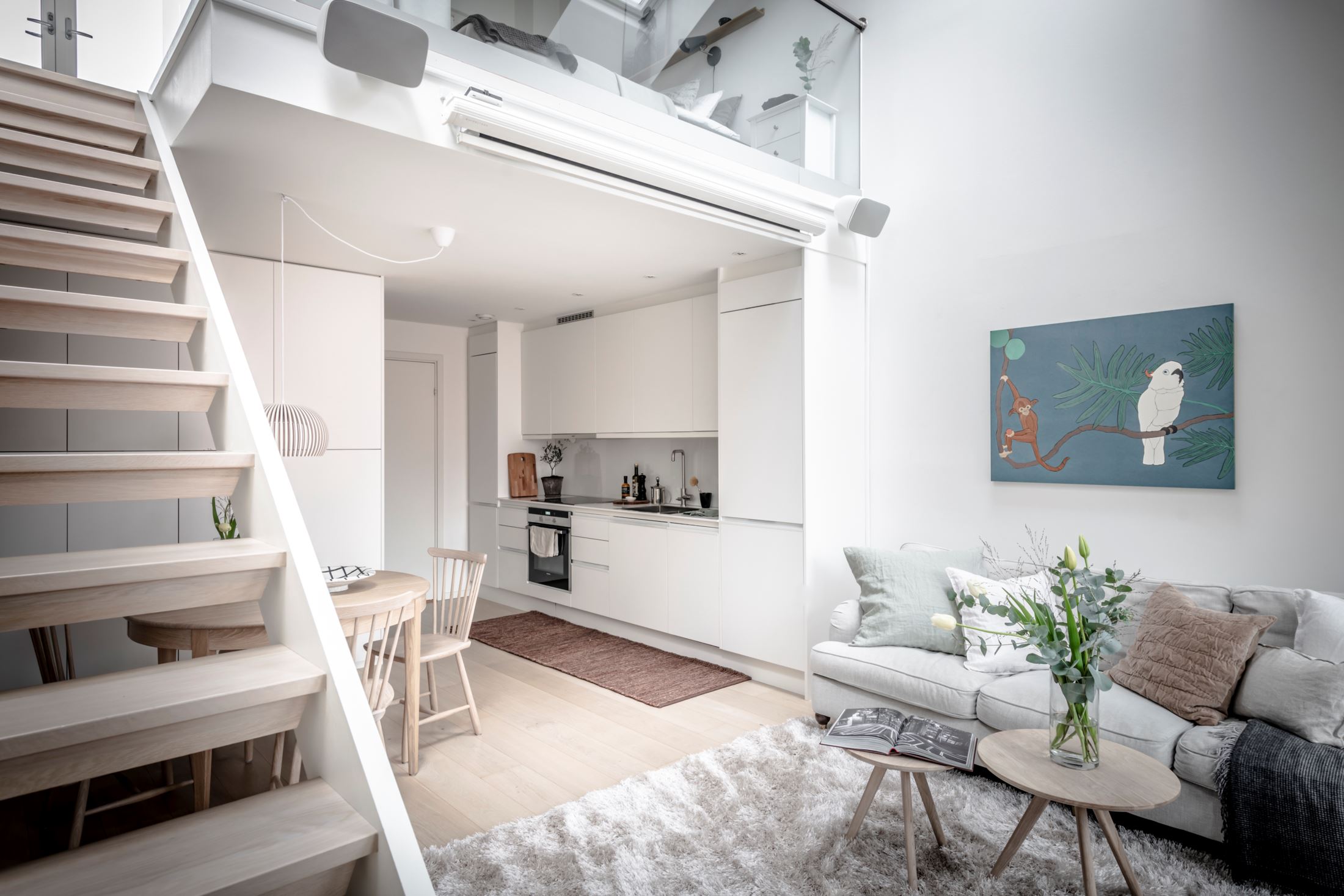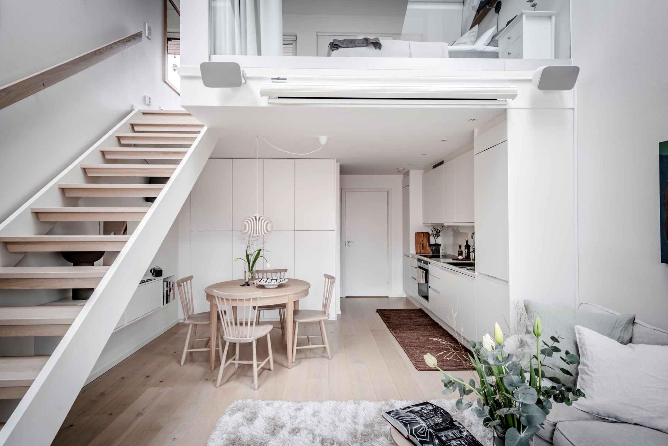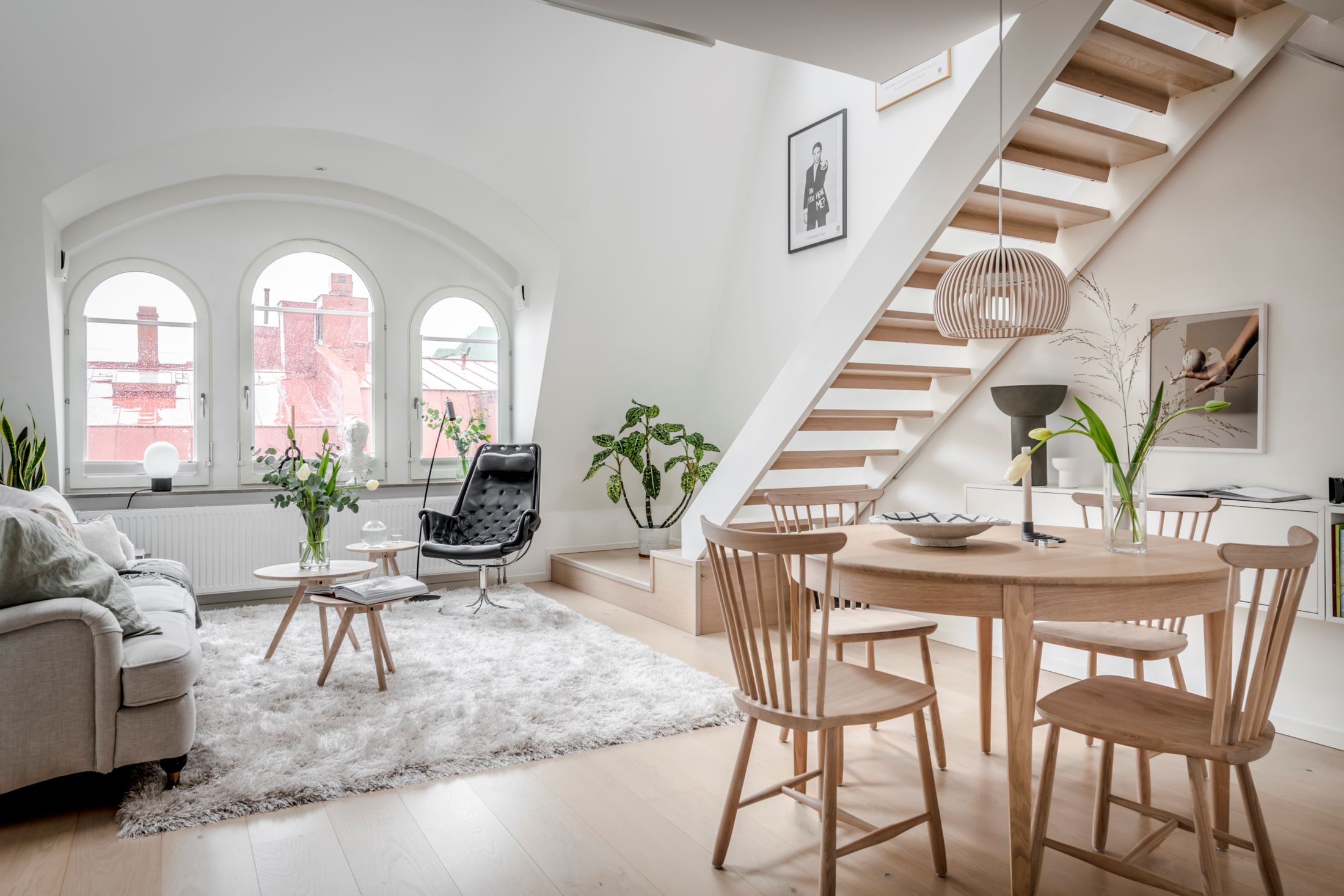 무려 4.66m 높이의 높은 층고를 자랑하는 다락방을 리모델링해 만든 아름답고 세련된 복층 아파트가 시선을 모으고 있다. 스웨덴 예테보리에 위치한 55m²(17평) 크기의 이 집은 1인 가구 혹은 2인 가구를 위한 매력적인 보금자리를 제안하고 있다.
