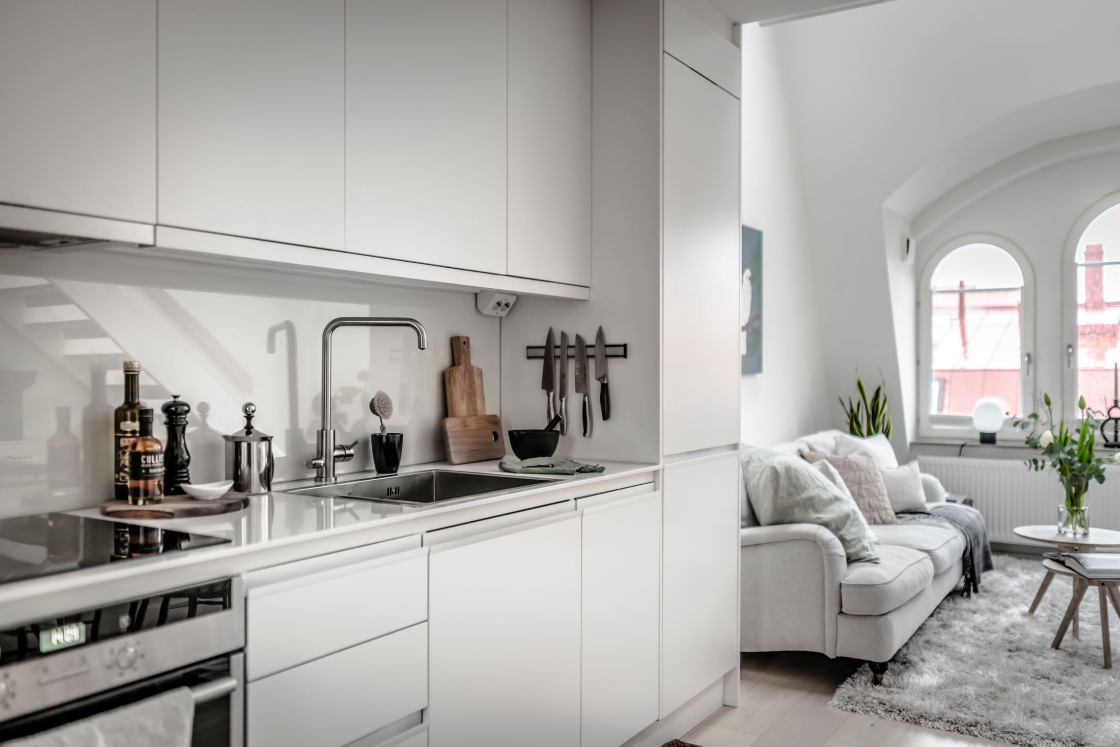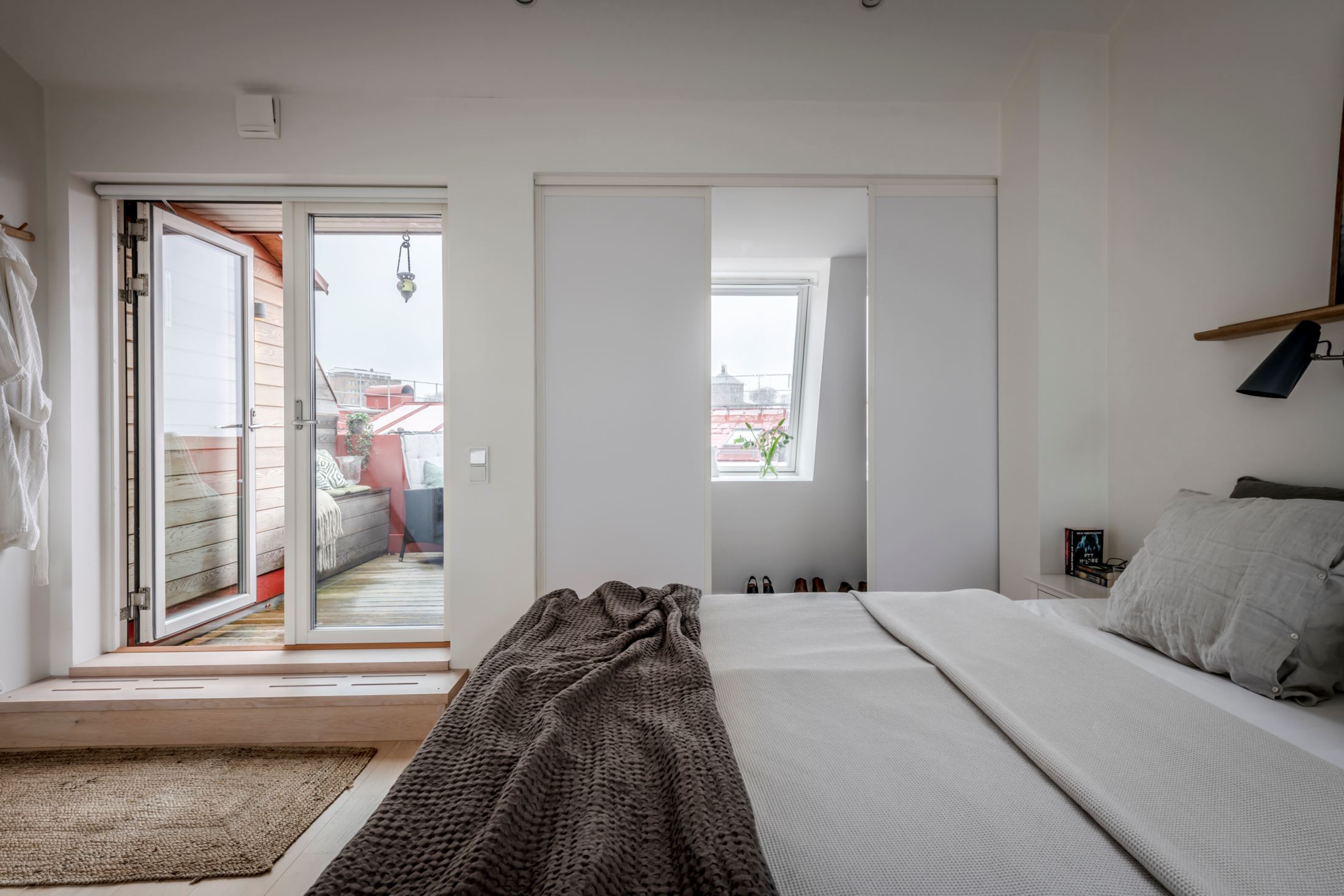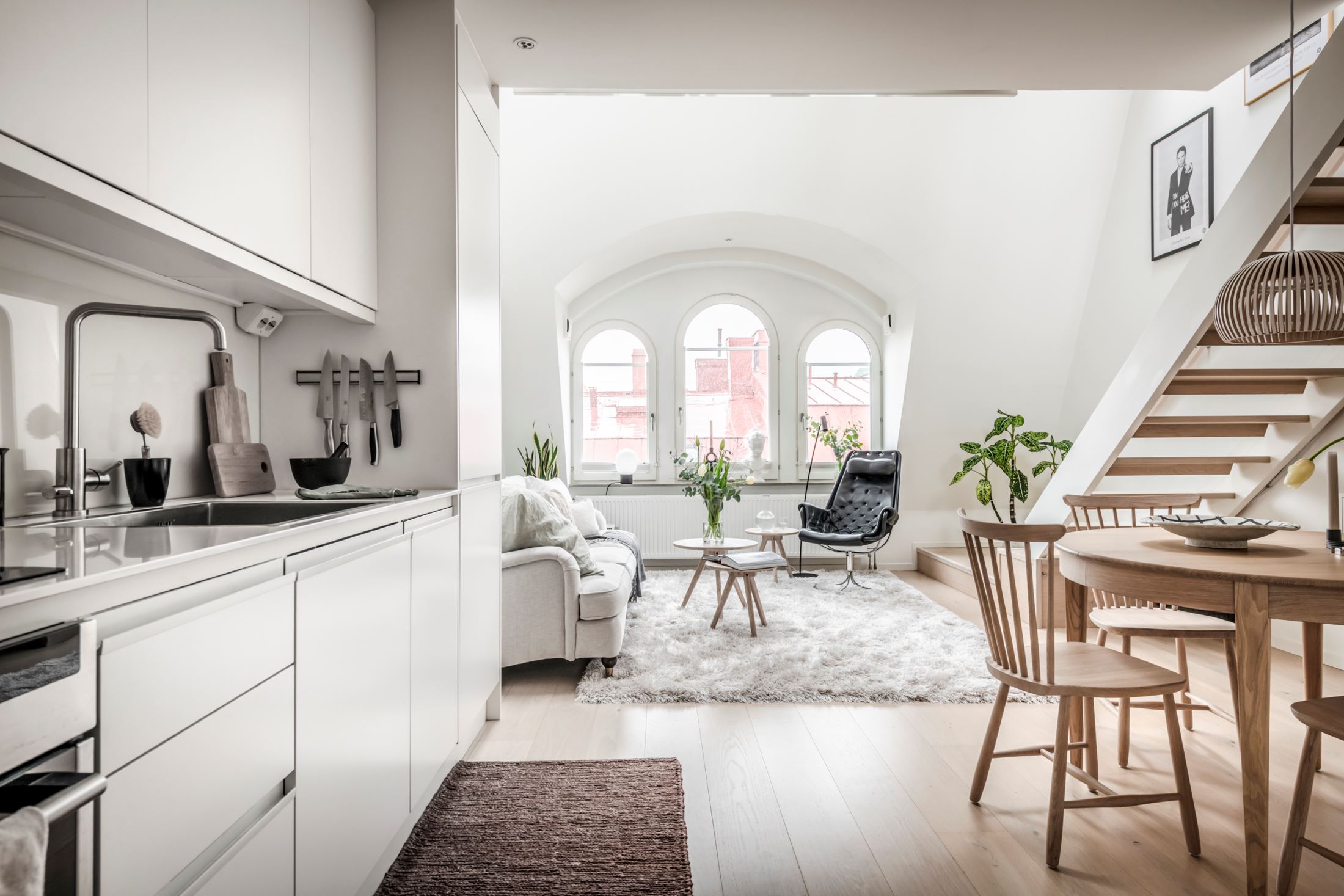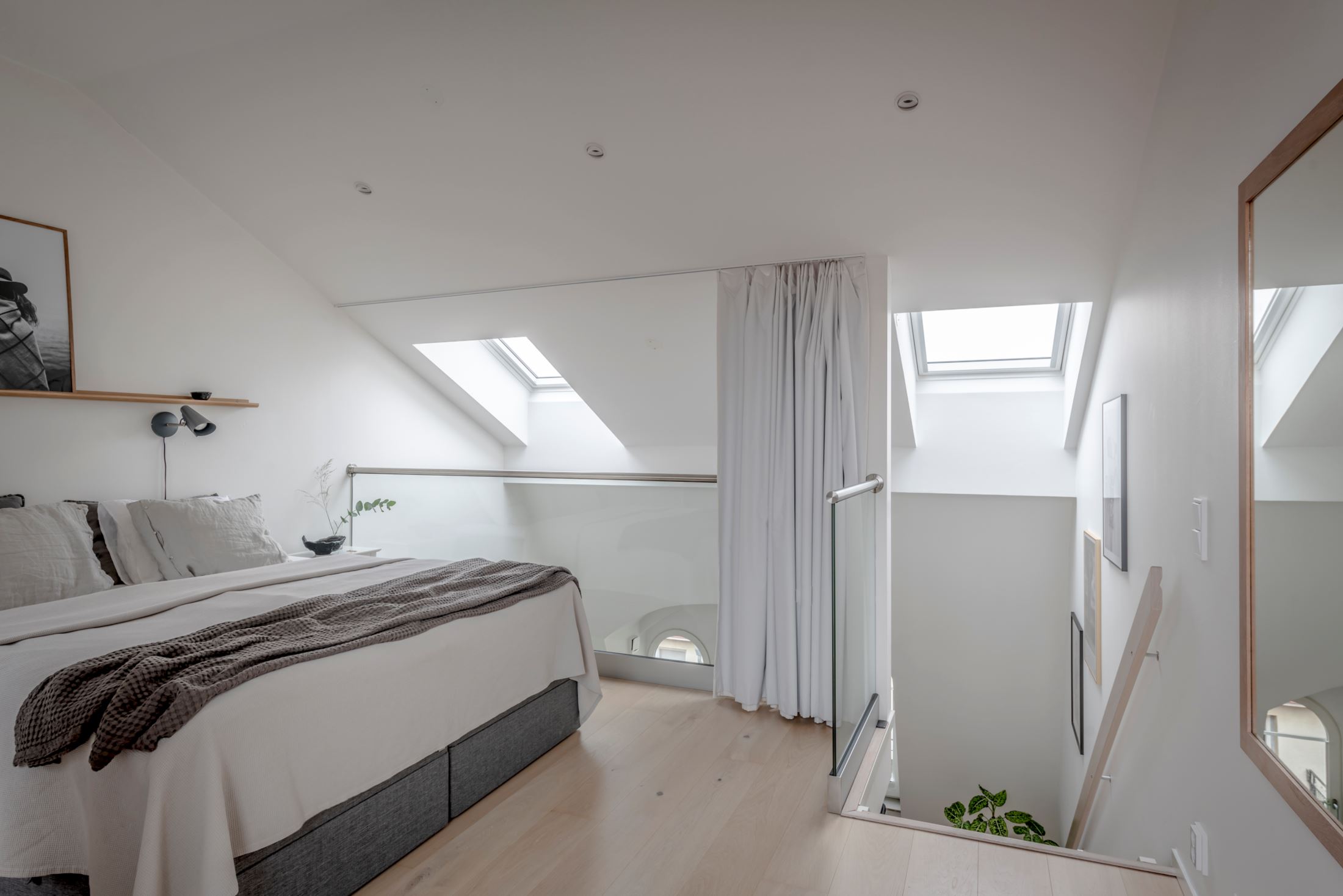 무려 4.66m 높이의 높은 층고를 자랑하는 다락방을 리모델링해 만든 아름답고 세련된 복층 아파트가 시선을 모으고 있다. 스웨덴 예테보리에 위치한 55m²(17평) 크기의 이 집은 1인 가구 혹은 2인 가구를 위한 매력적인 보금자리를 제안하고 있다.