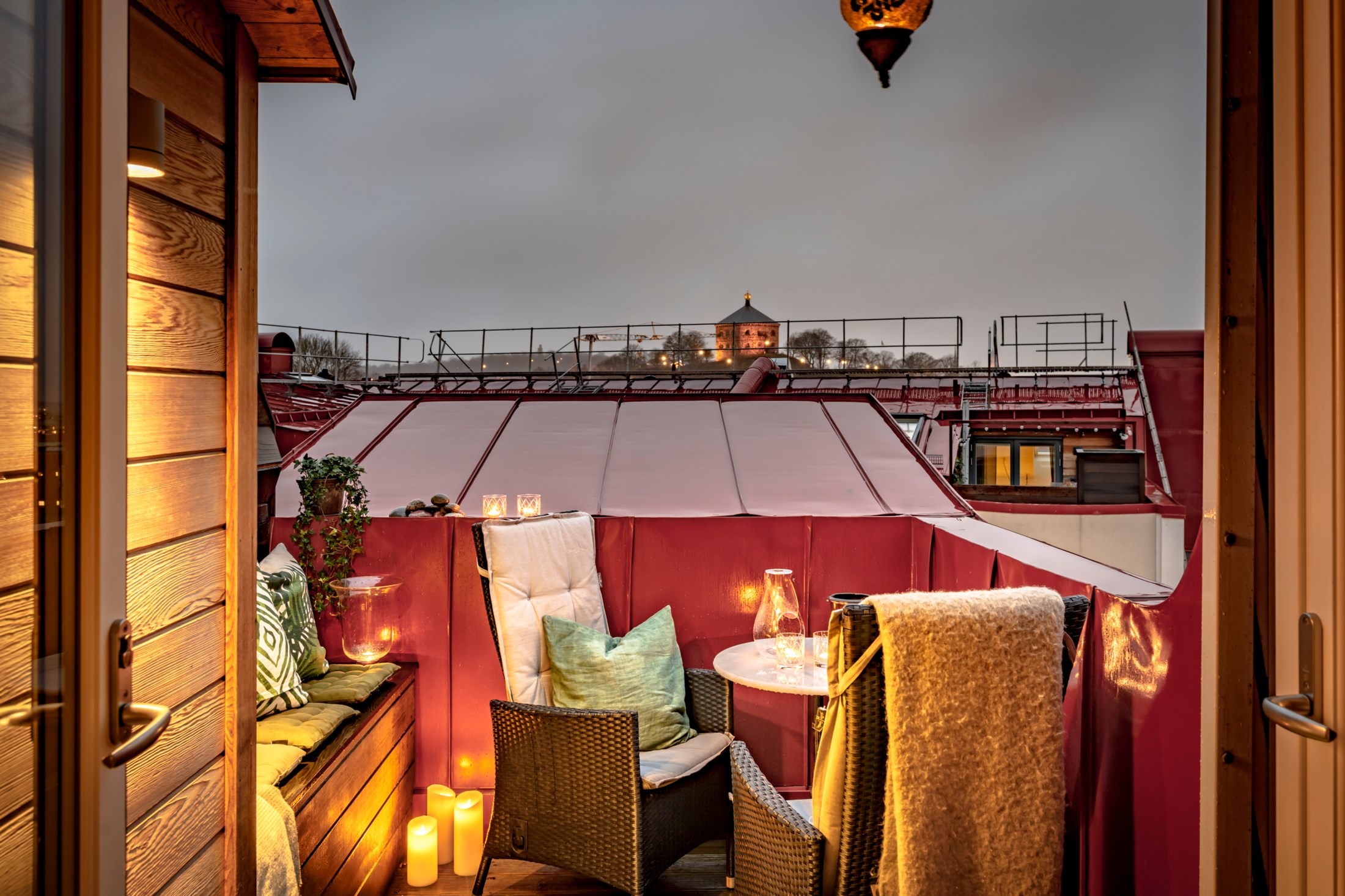 탁 트인 전망을 마음껏 누릴 수 있는 야외 테라스는 야외용 테이블과 체어, 벤치를 깔끔하게 배치한 후, 조명과 양초 등으로 아기자기한 포인트를 줘 매력적인 프라이빗 카페를 연출하고 있다.
