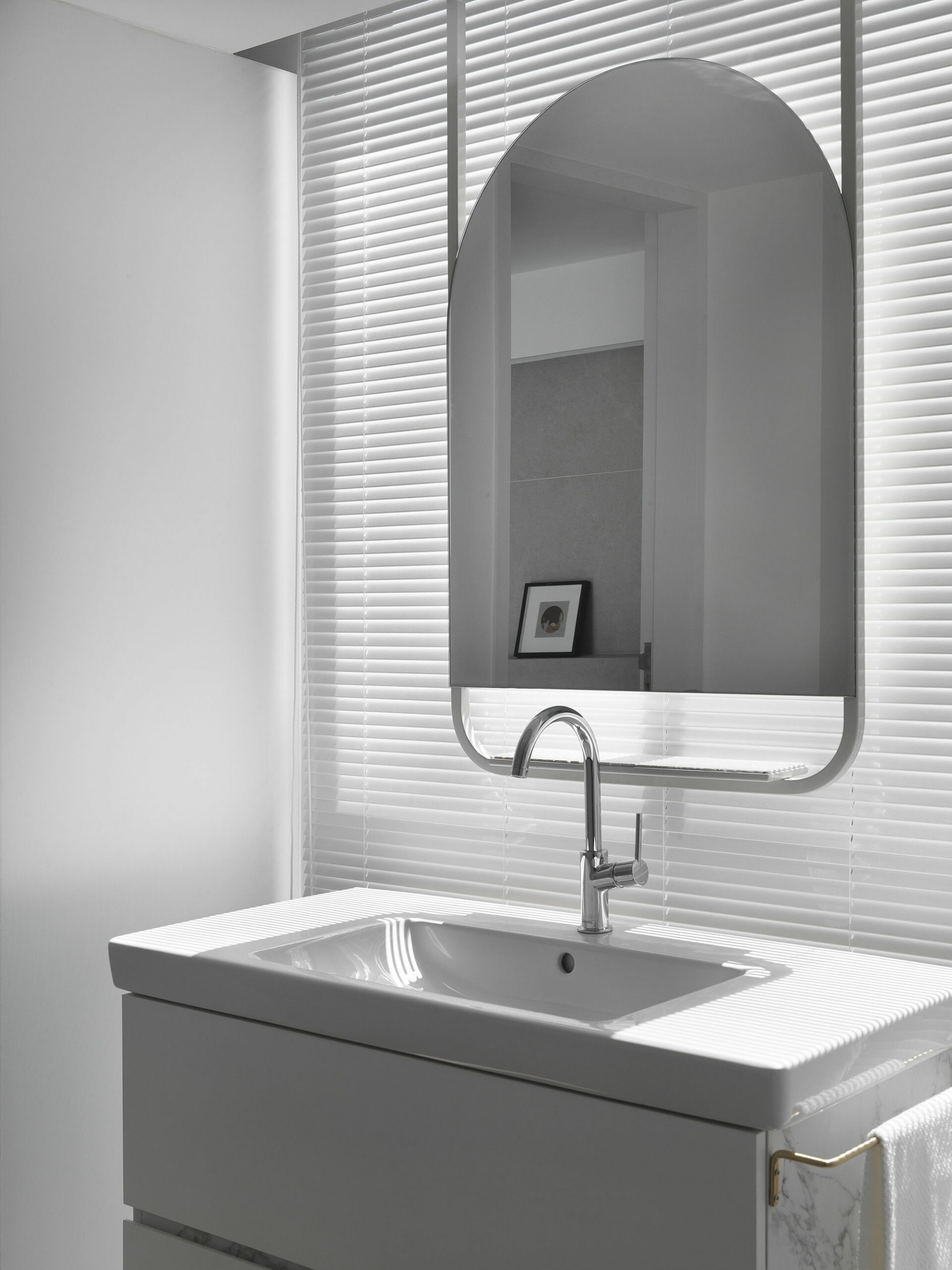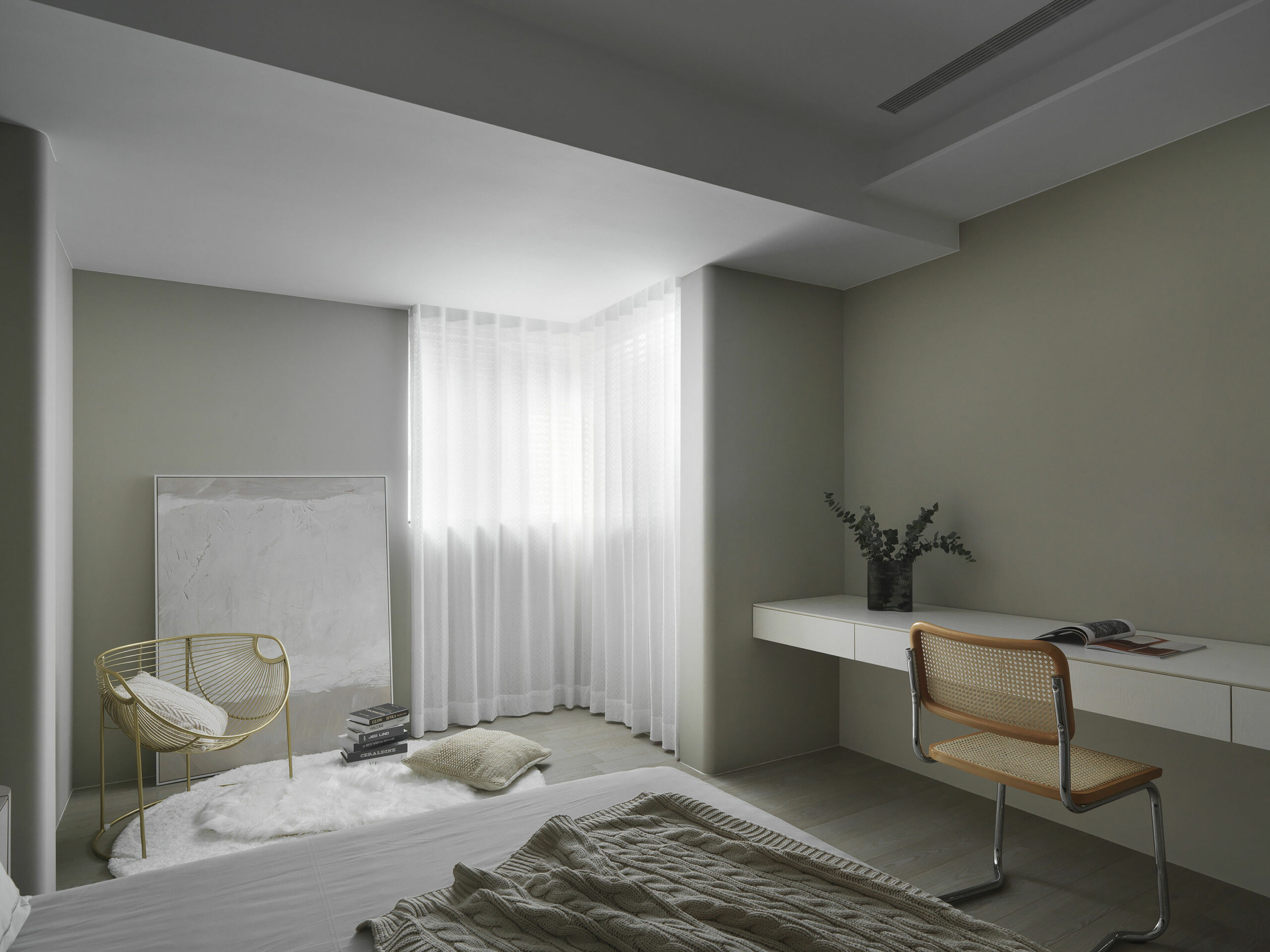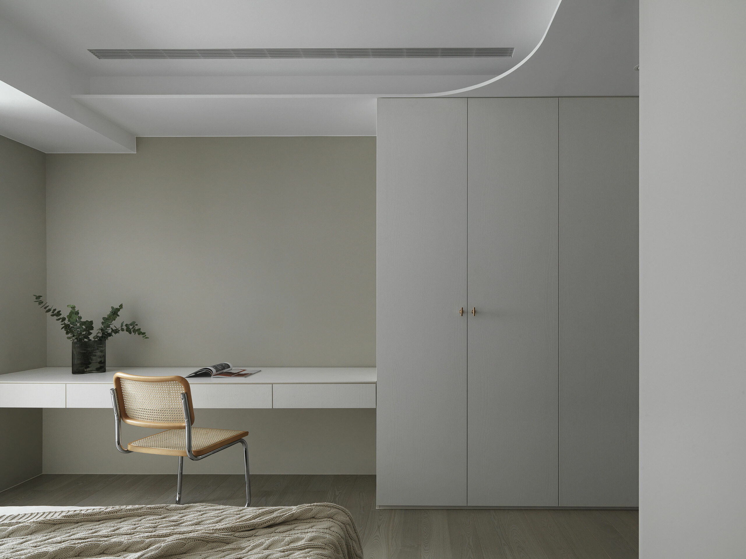 책상과 윈도우 시트, 빌트인장으로 깔끔하게 꾸며진 홈 오피스는 업무, 작업, 학습 등에 집중할 수 있는 조용한 독립 공간으로 디자인되었다.