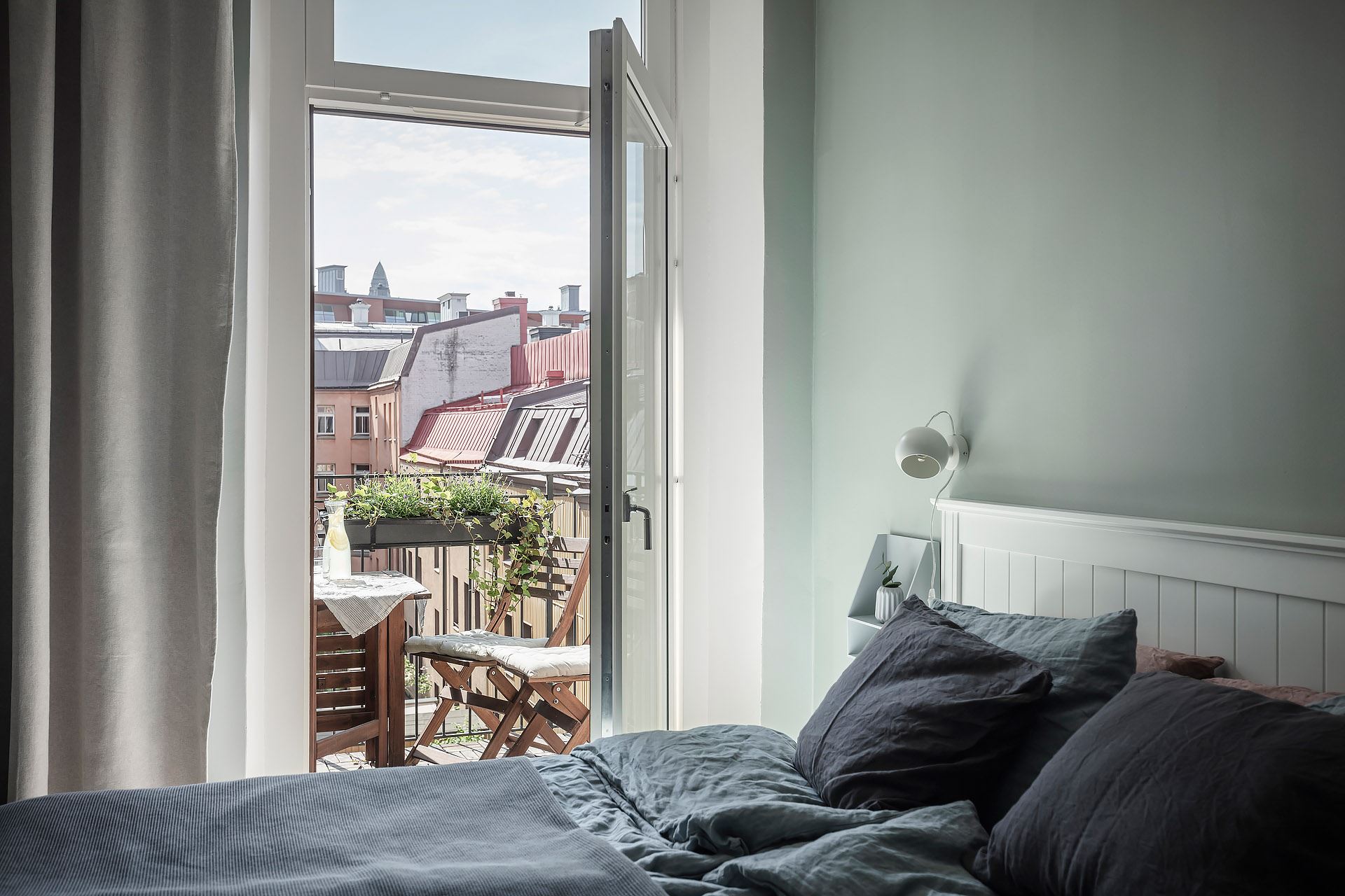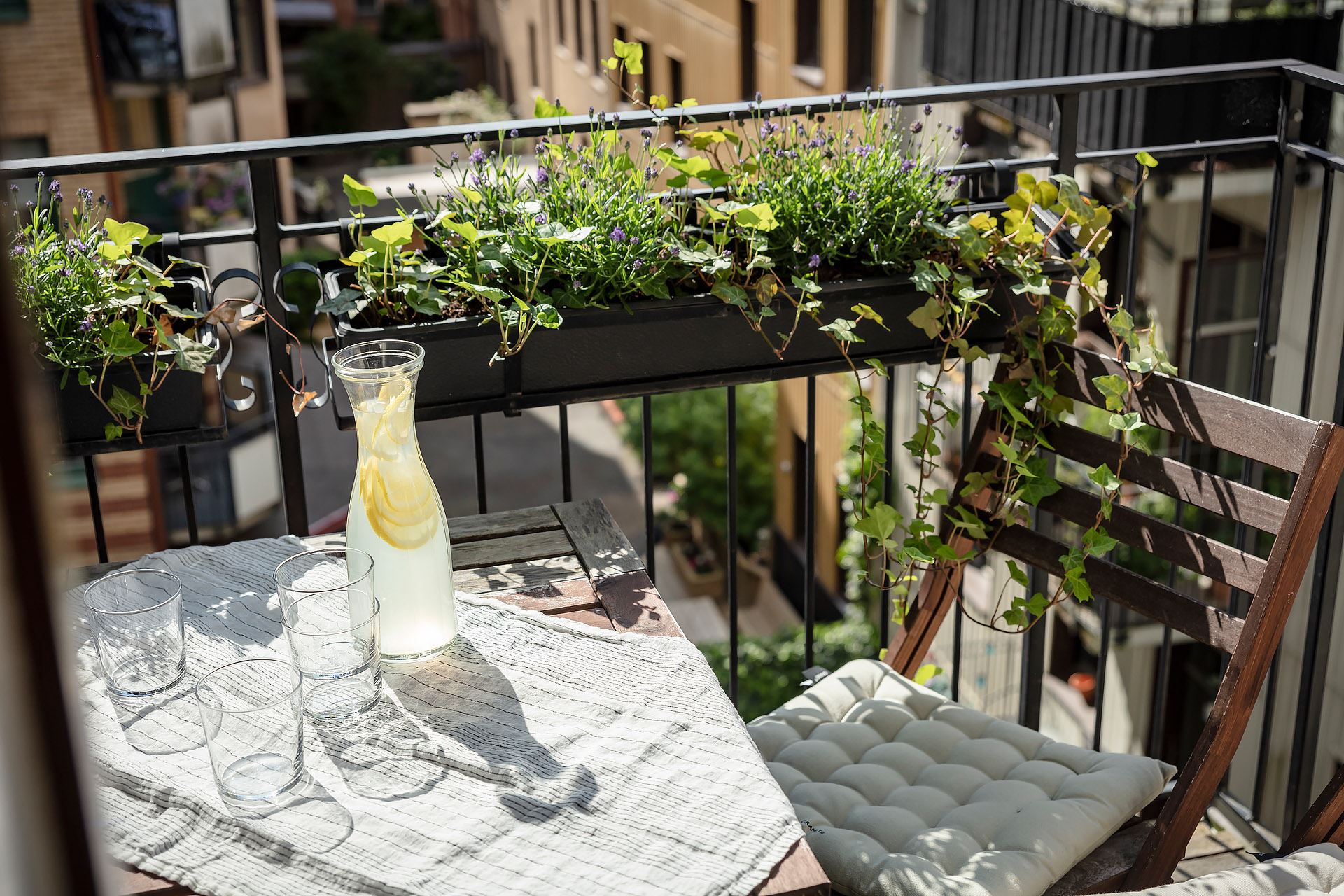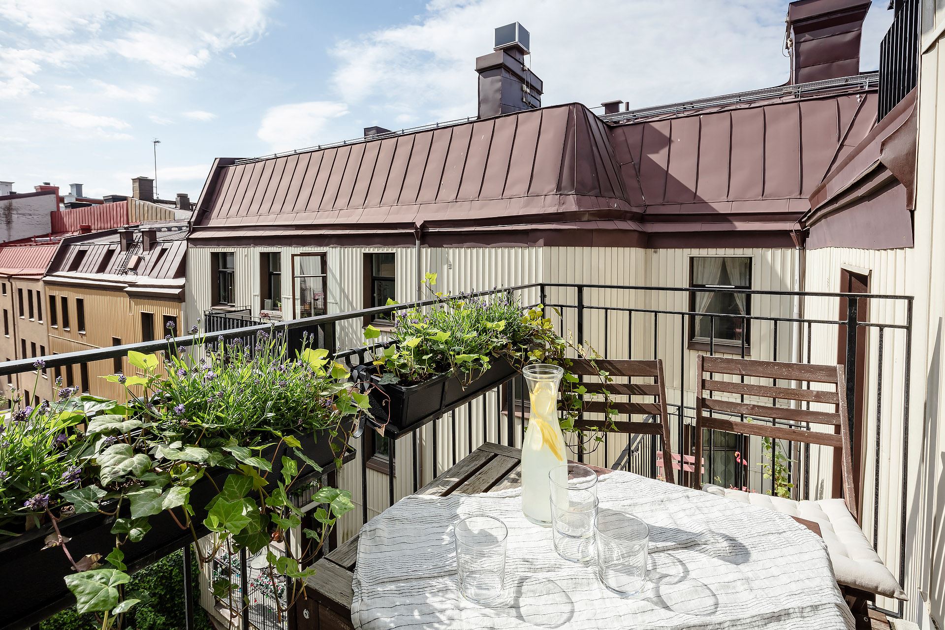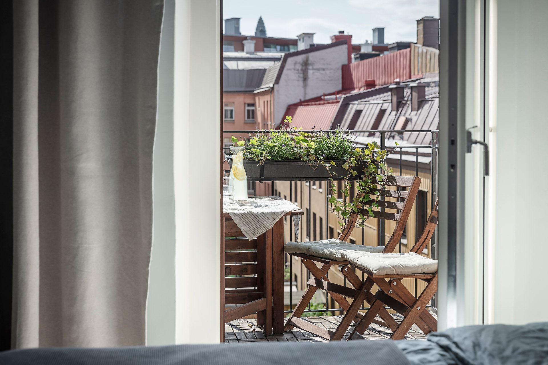 미니 테이블 세트가 놓인 전용 발코니는 다양한 종류의 식물들로 아기자기하게 꾸며져 가벼운 식사와 티타임, 독서 등 다양한 일상을 즐길 수 있는 여유로운 힐링 공간을 연출하고 있다.