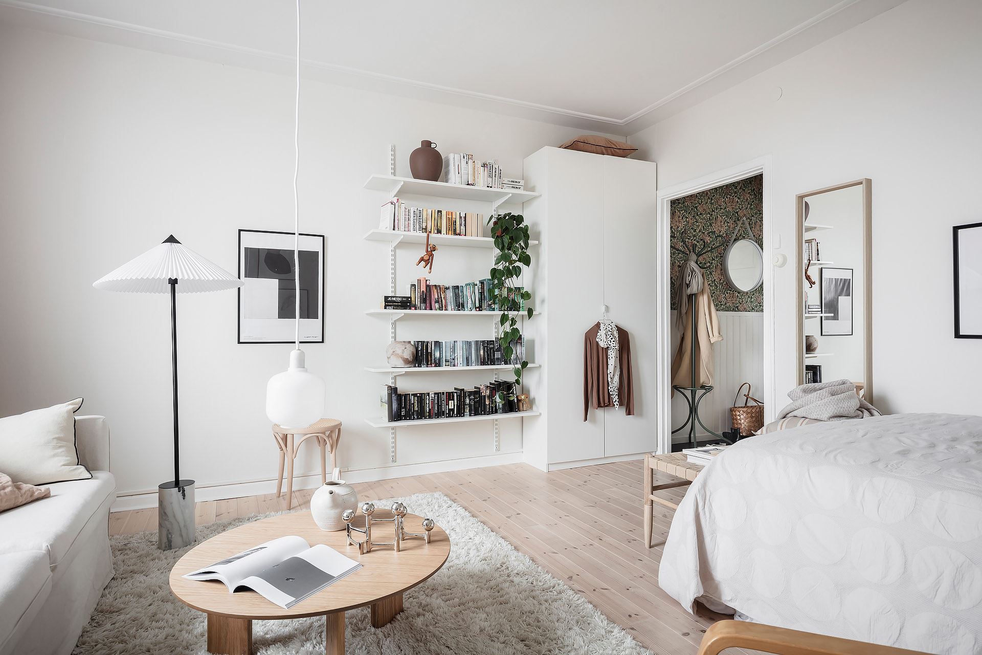 눈이 즐거워지는 예쁜 홈 스타일링으로 가득 채워진 이 집은 거실 겸 침실, 주방 겸 다이닝룸, 욕실, 홀, 현관으로 구성되어 있으며, 화이트 컬러로 깨끗하게 마감된 실내에 우드 플로어로 시공해 아늑하고 따뜻한 분위기를 연출하고 있다.