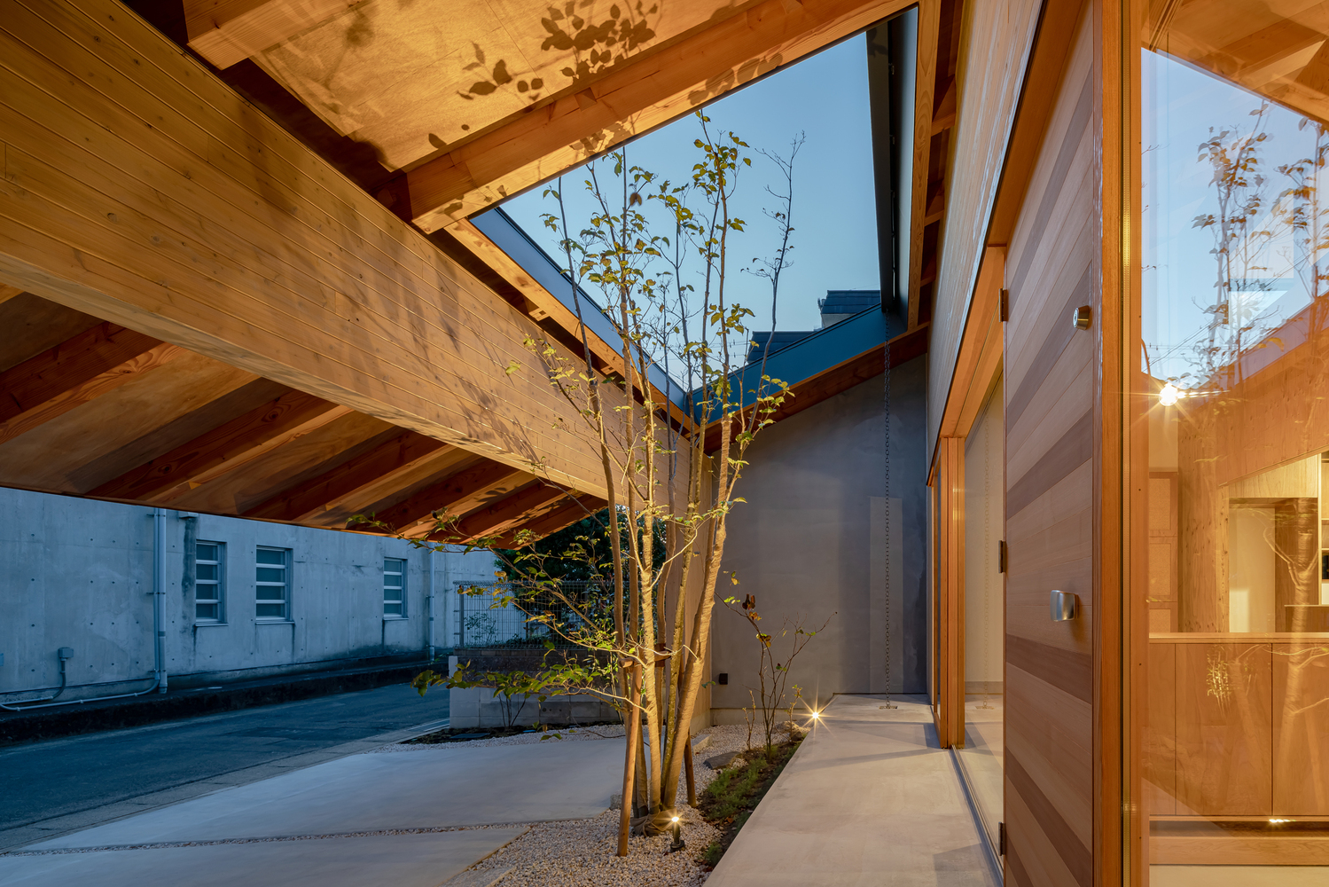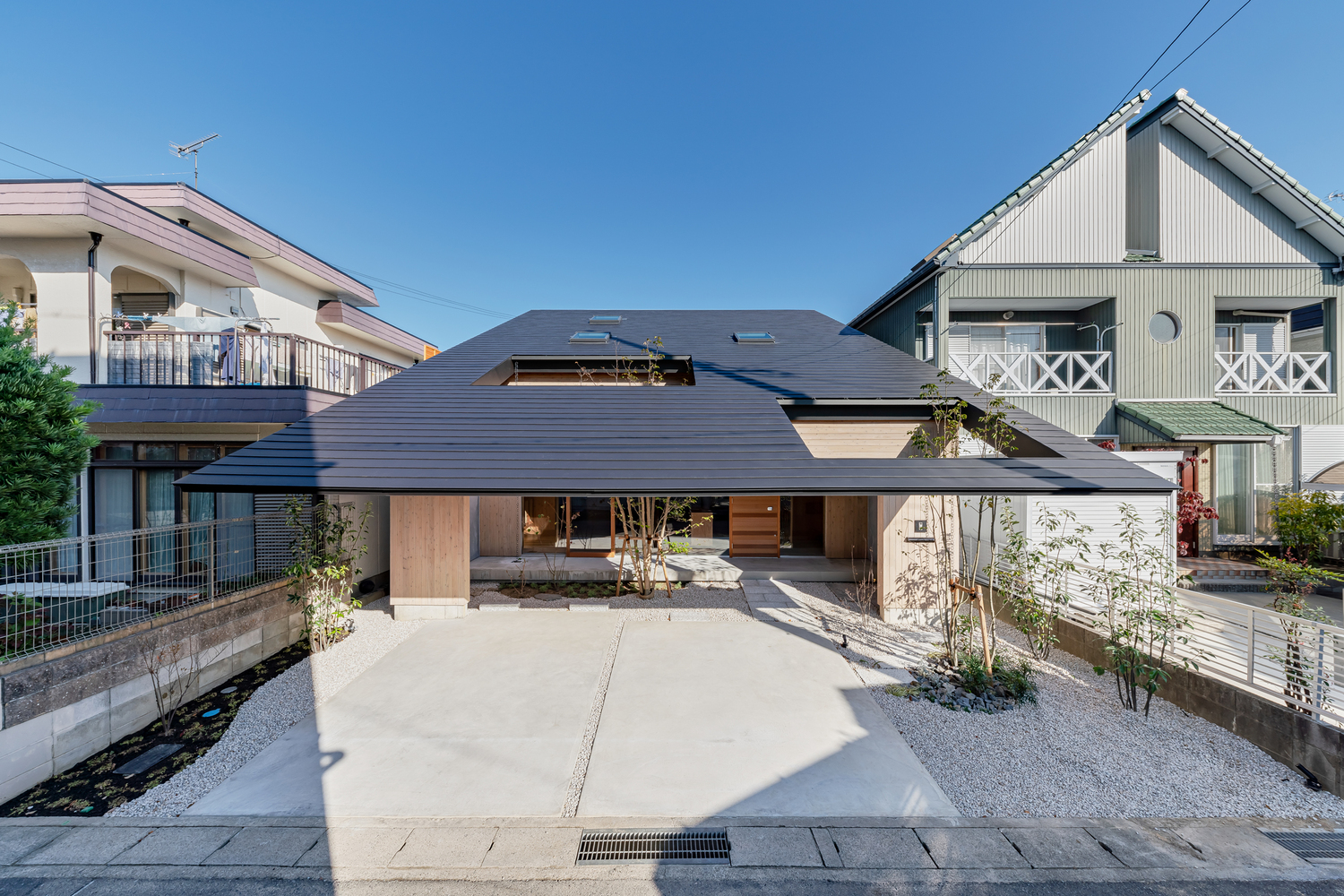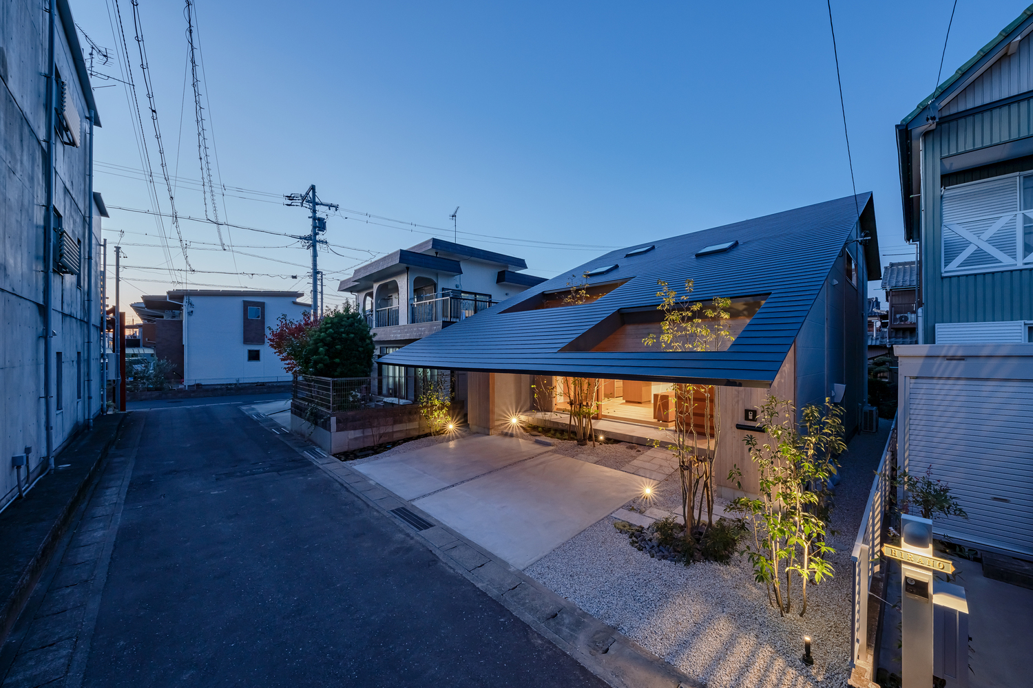 독특한 지붕 디자인이 돋보이는 색다른 매력의 단독주택이 시선을 모으고 있다. 일본 이치노미야에 위치한 140m²(42평) 크기의 이 집은 비스듬하게 기울어진 대형 처마 안에 자리하고 있는 실내에 대한 묘한 호기심을 불러일으키며 공간에 대한 궁금증을 자아내고 있다.