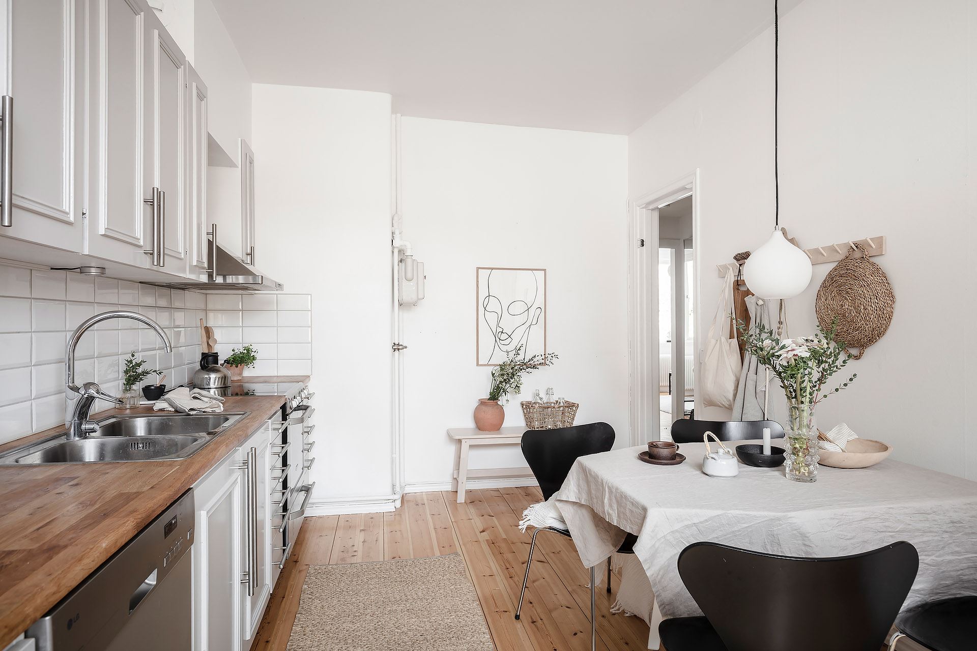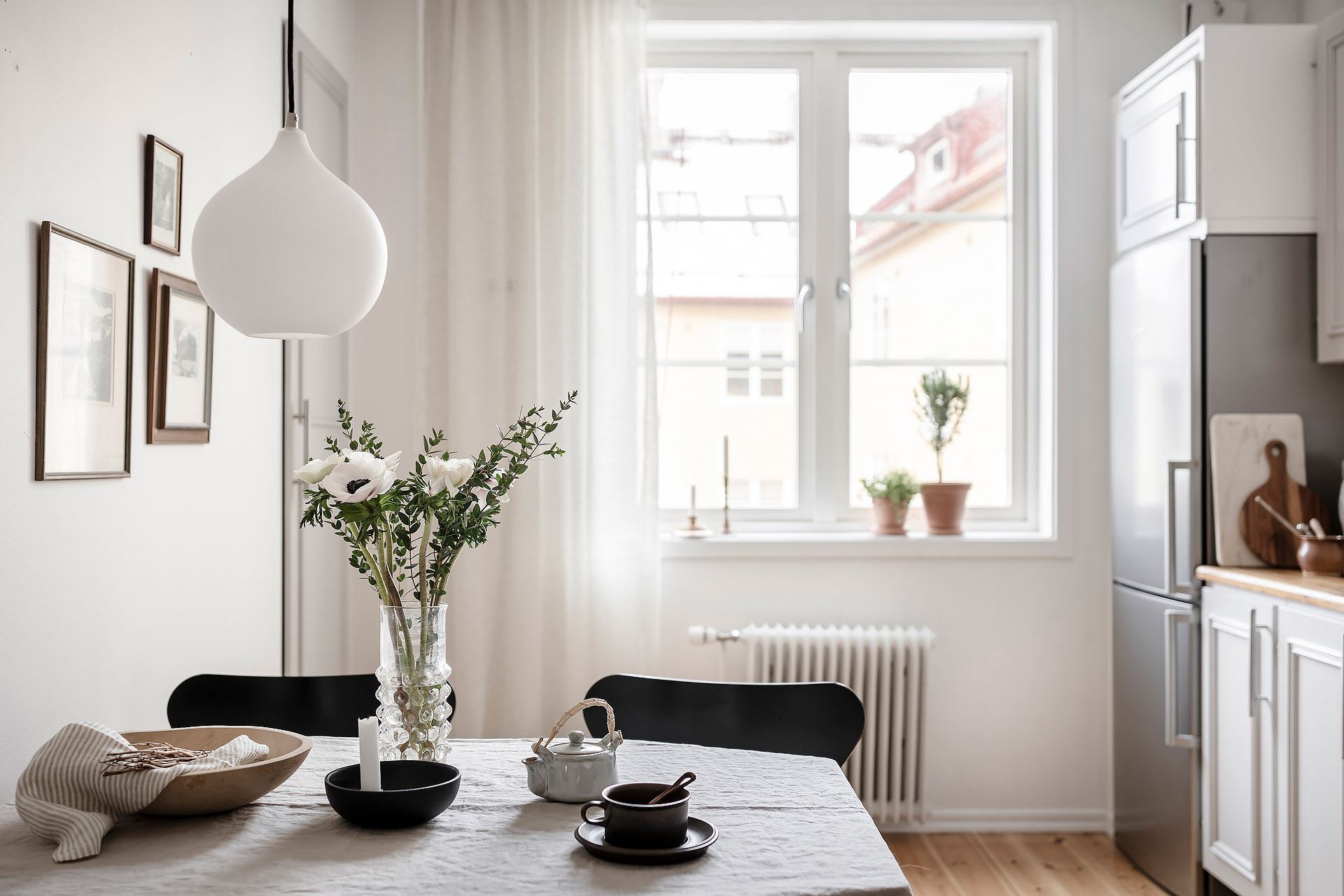 4인용 다이닝 테이블 세트가 놓인 주방 한 켠은 식사와 티타임을 즐길 수 있는 작지만 실용적인 미니 다이닝 룸으로 꾸며져 일상의 여유를 더하고 있다.