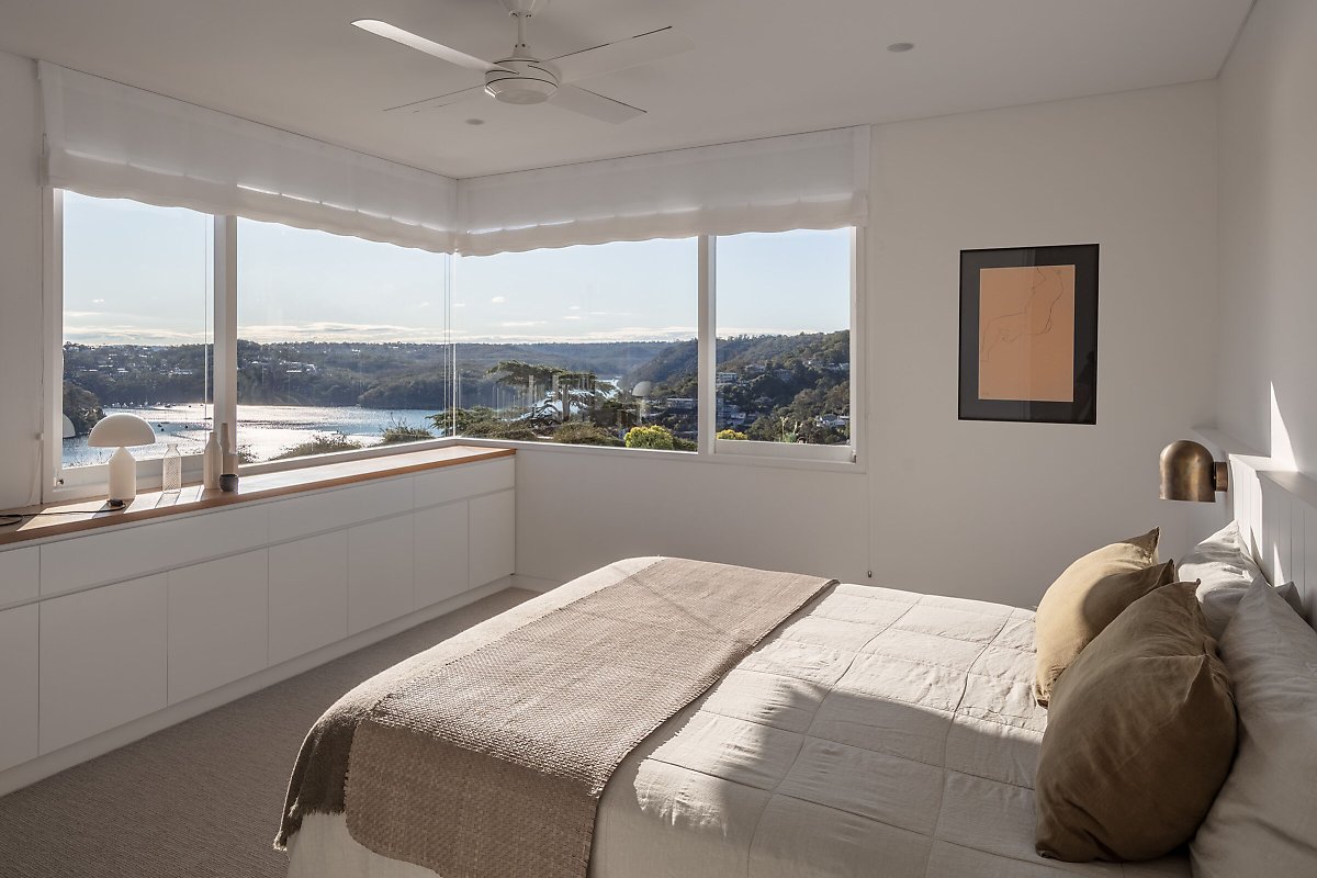 단정한 모던 스타일로 꾸며진 아늑한 마스터 침실은 창밖으로 펼쳐진 멋진 전망이 공간의 특별함을 더하는 편안한 프라이빗 공간을 잘 보여주고 있다.