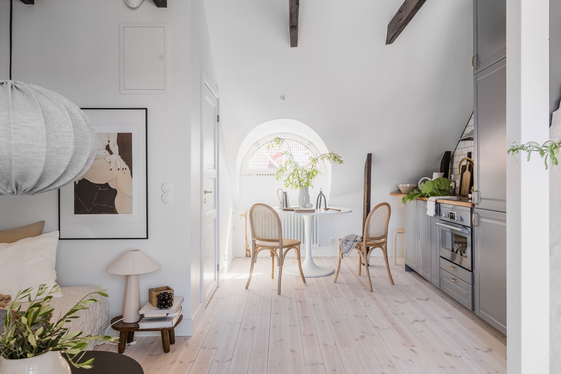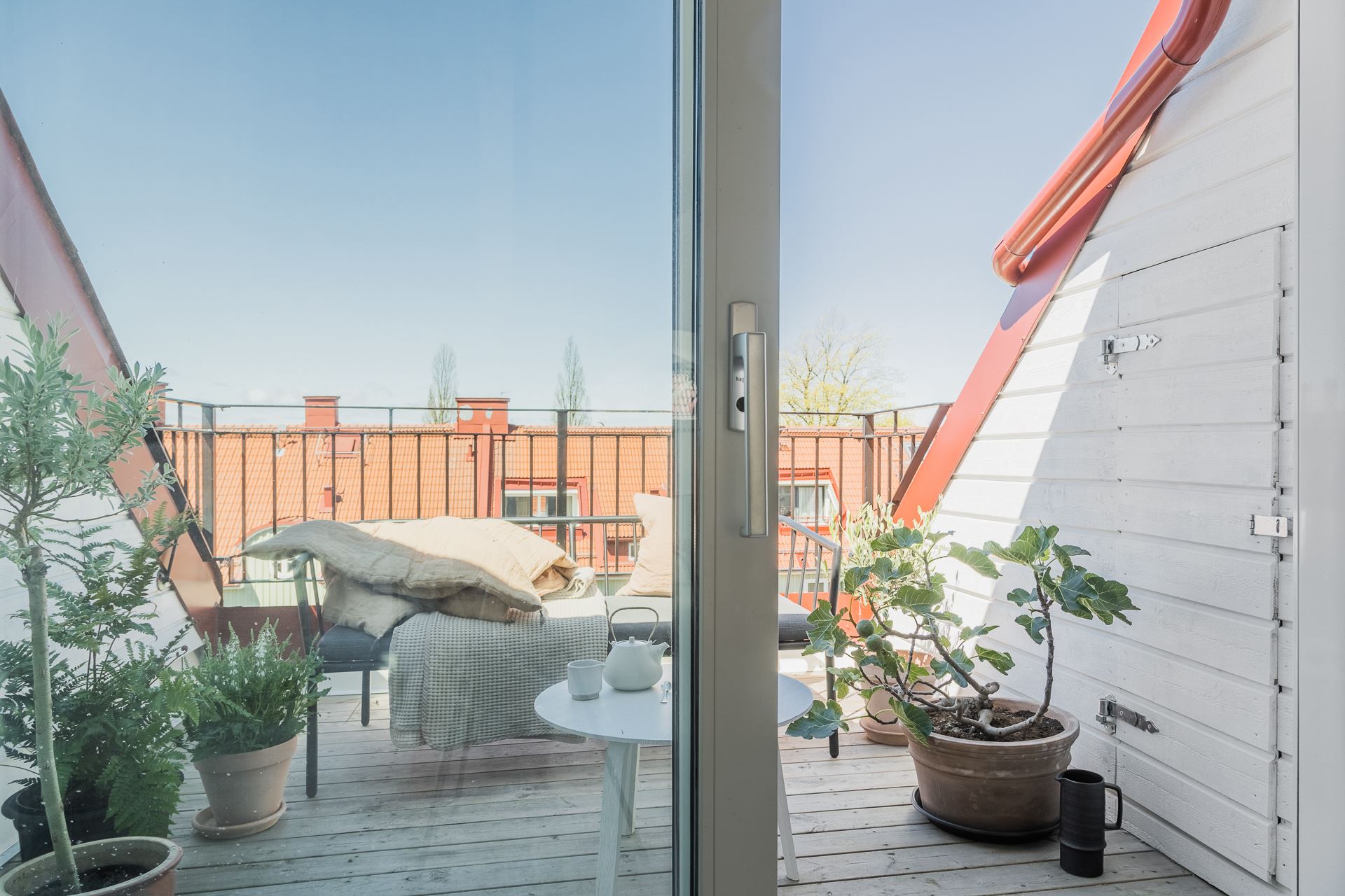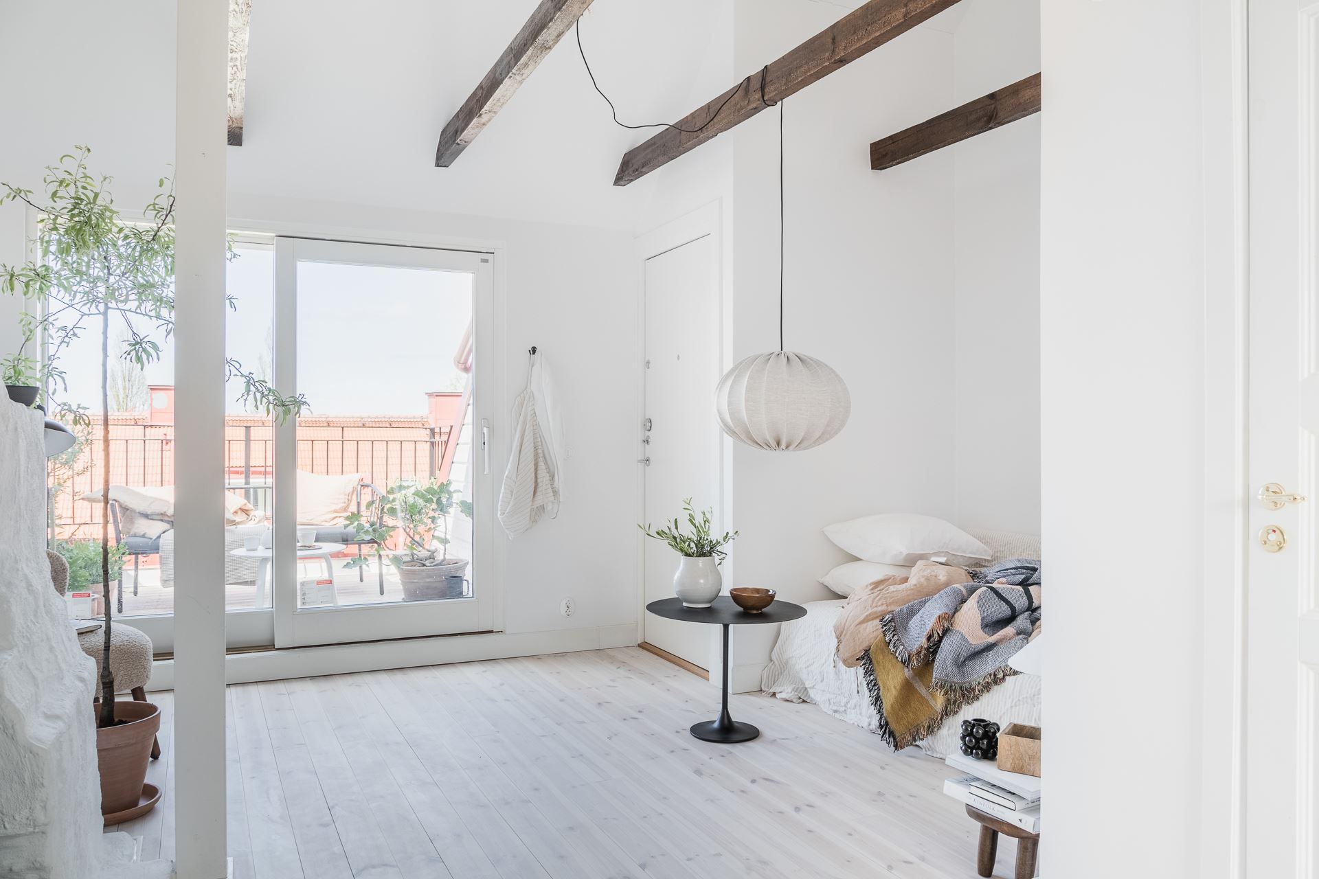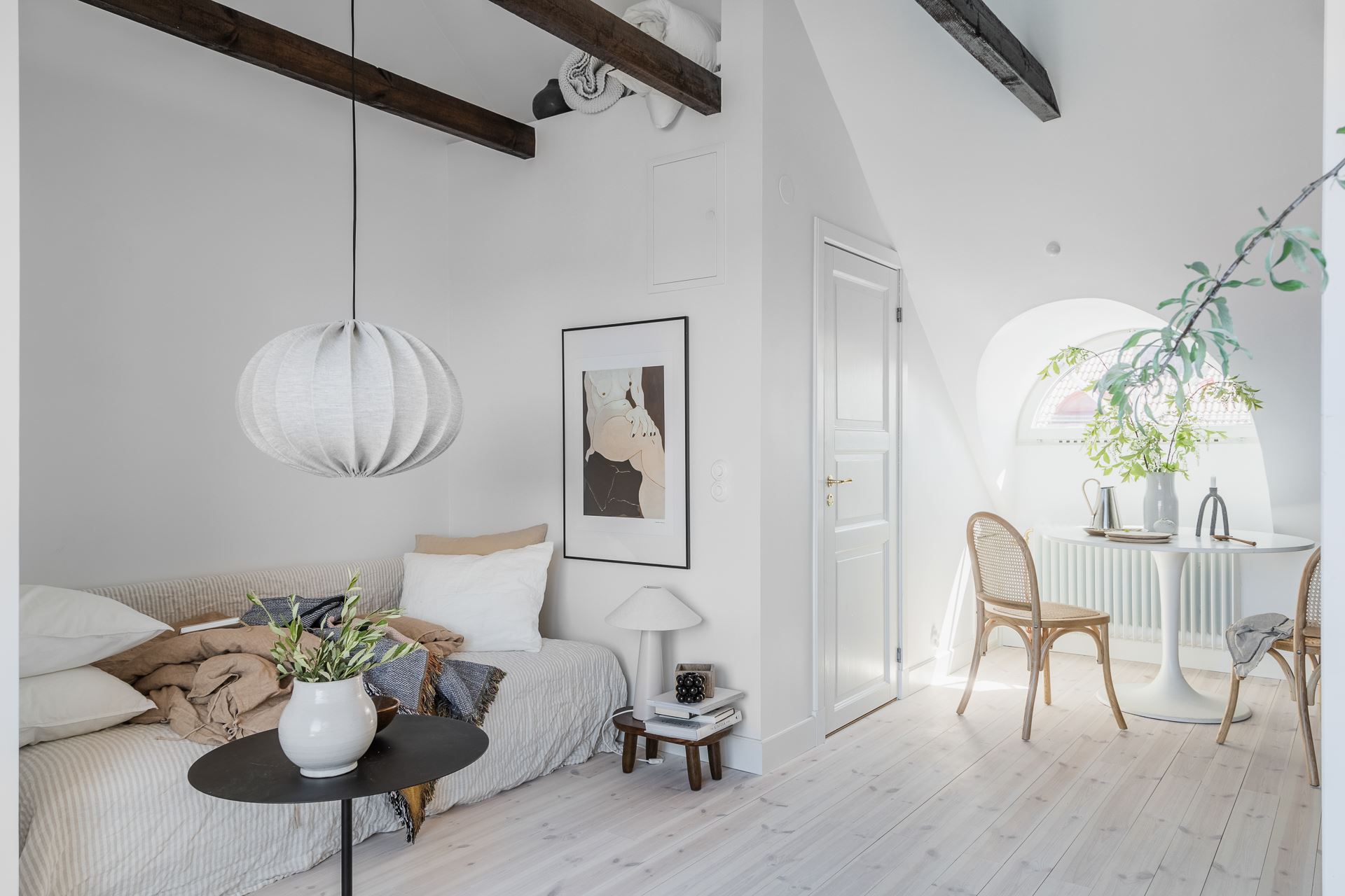 홈 카페로 꾸며진 예쁜 야외 베란다가 있는 아담한 원룸 아파트가 일상의 여유와 낭만을 더하는 멋진 인테리어로 시선을 모으고 있다. 스웨덴에 위치한 21㎡(약 7평) 크기의 이 집은 아름다운 도시 풍경을 한눈에 조망할 수 있는 꼭대기 층에 자리하고 있는 오래된 다락방을 리모델링한 주거공간으로 북유럽 특유의 따뜻한 감성을 공간으로 담아내고 있다.