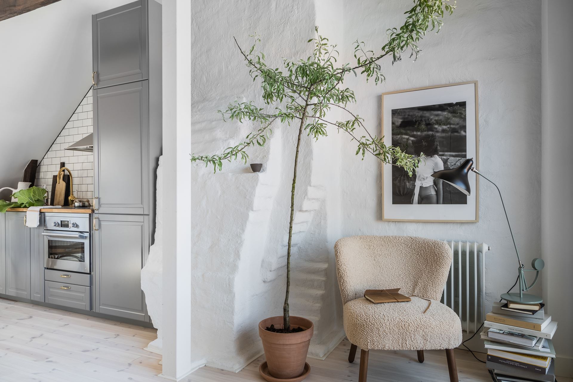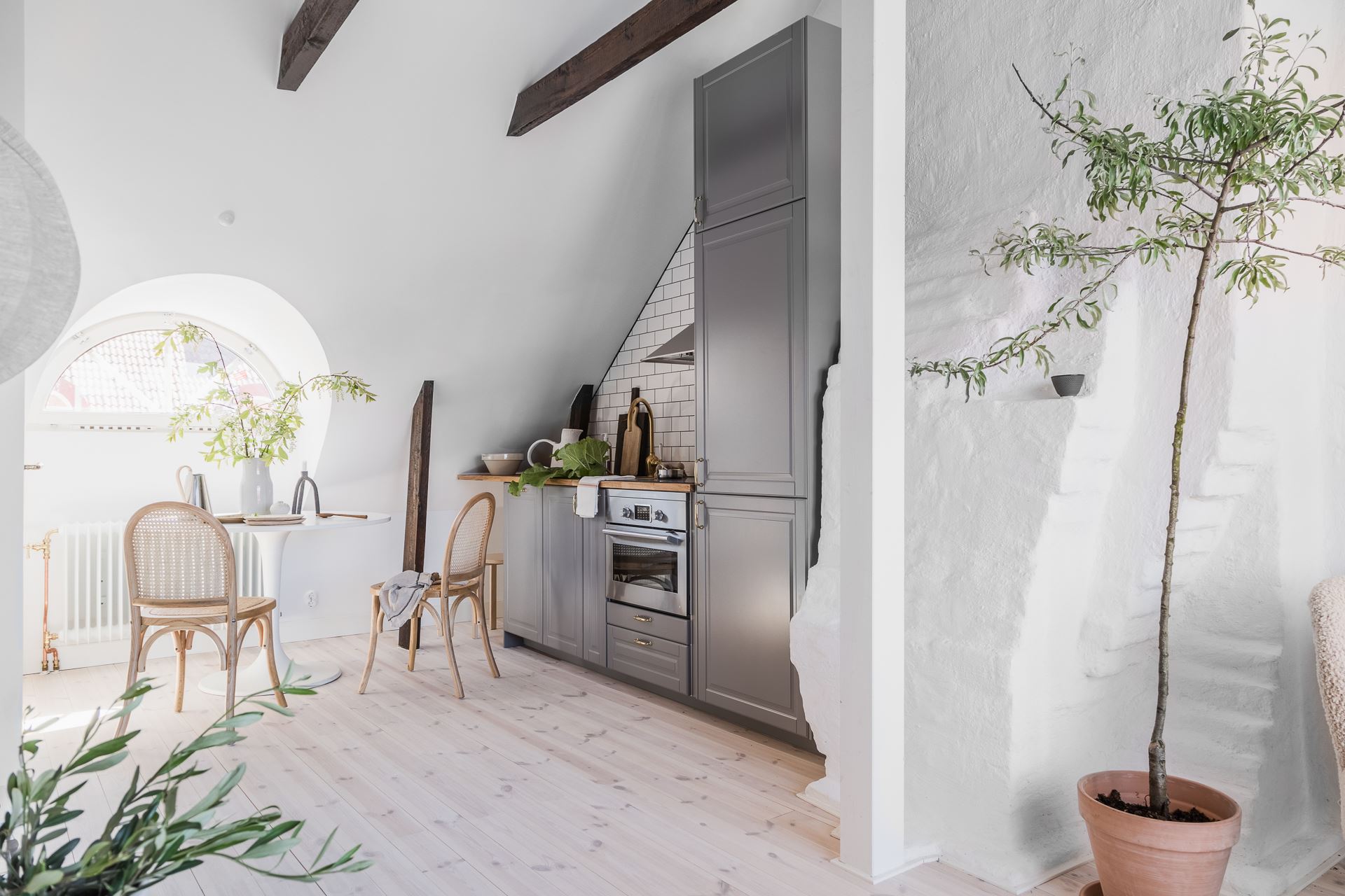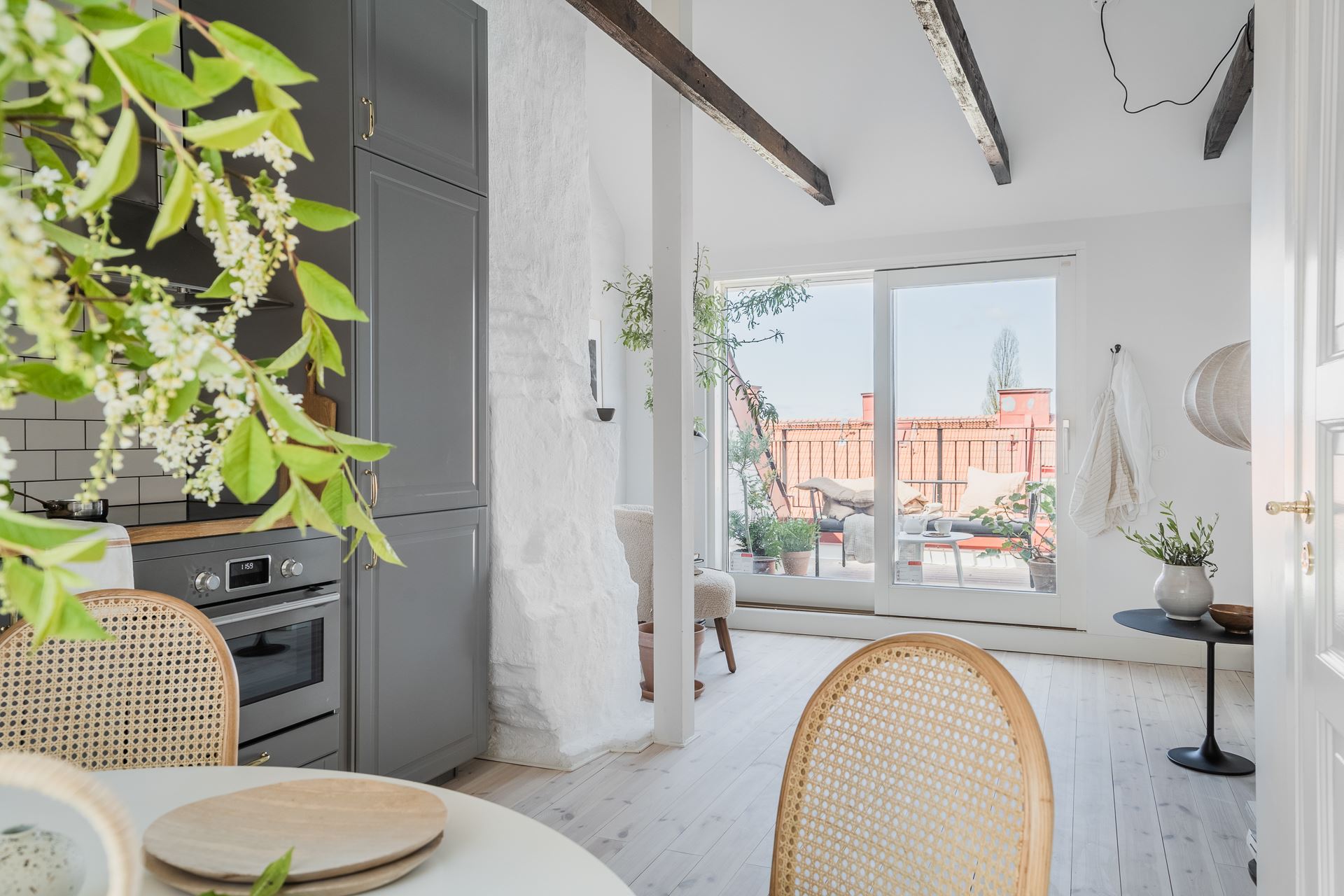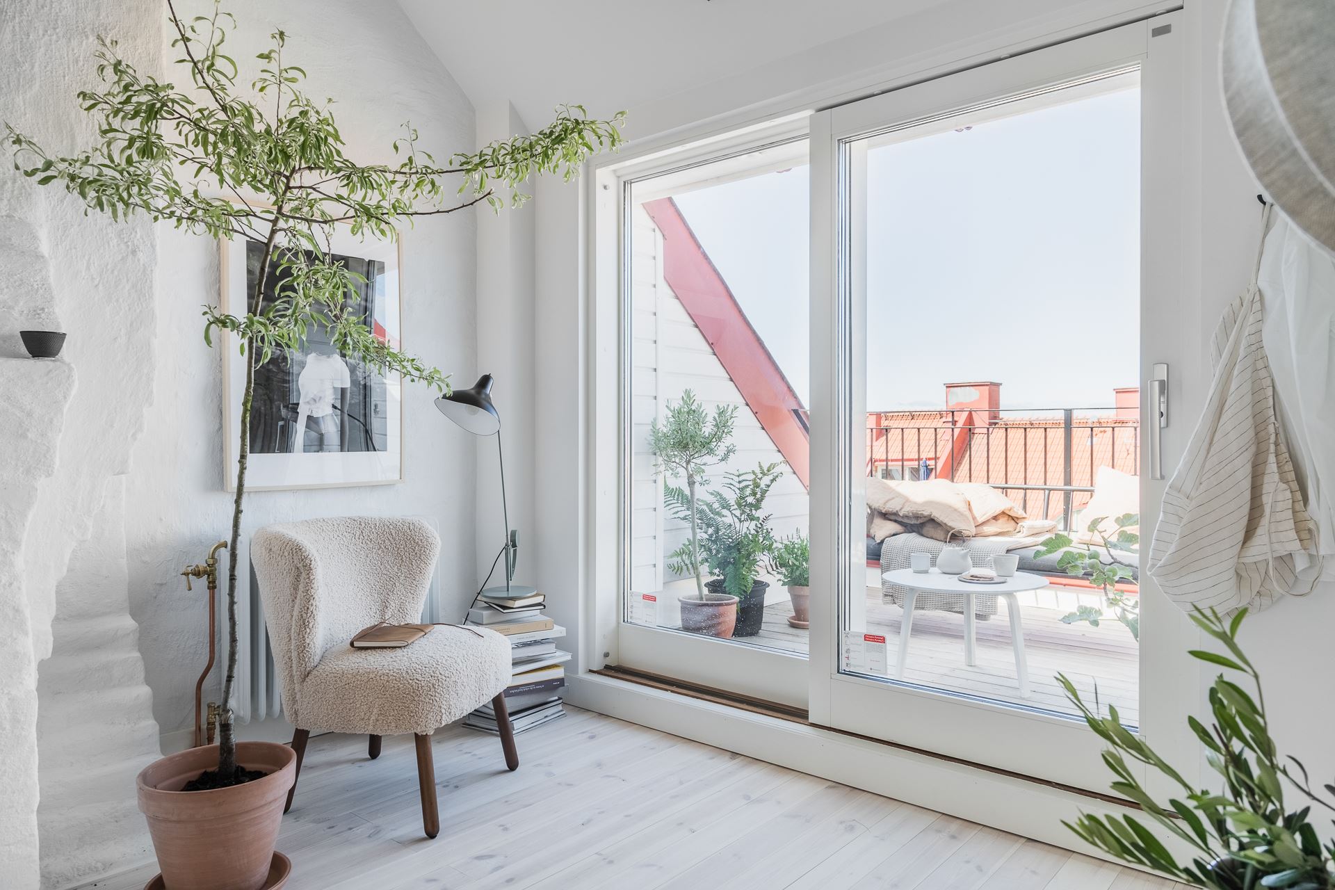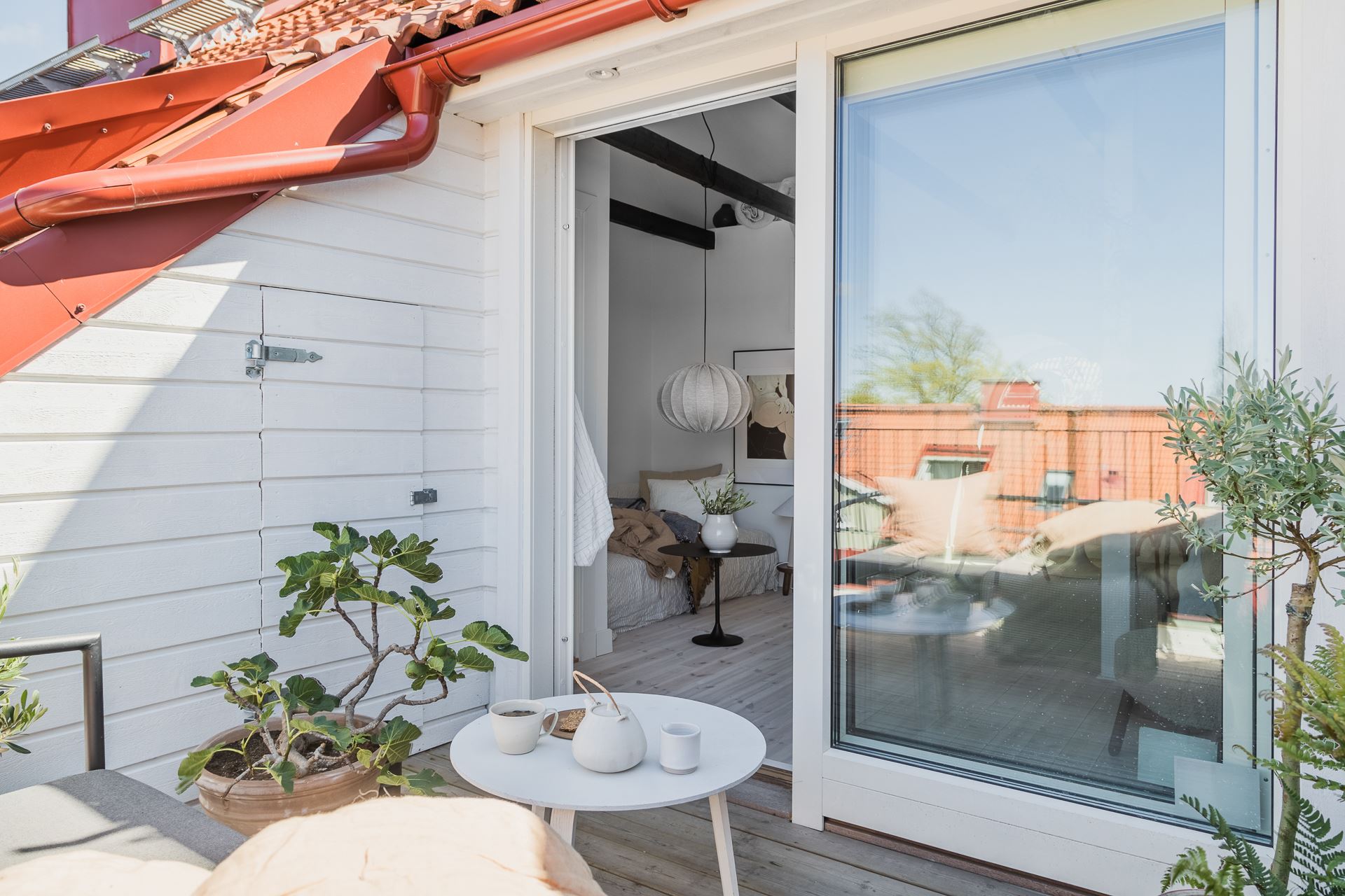 홈 카페로 꾸며진 예쁜 야외 베란다가 있는 아담한 원룸 아파트가 일상의 여유와 낭만을 더하는 멋진 인테리어로 시선을 모으고 있다. 스웨덴에 위치한 21㎡(약 7평) 크기의 이 집은 아름다운 도시 풍경을 한눈에 조망할 수 있는 꼭대기 층에 자리하고 있는 오래된 다락방을 리모델링한 주거공간으로 북유럽 특유의 따뜻한 감성을 공간으로 담아내고 있다.