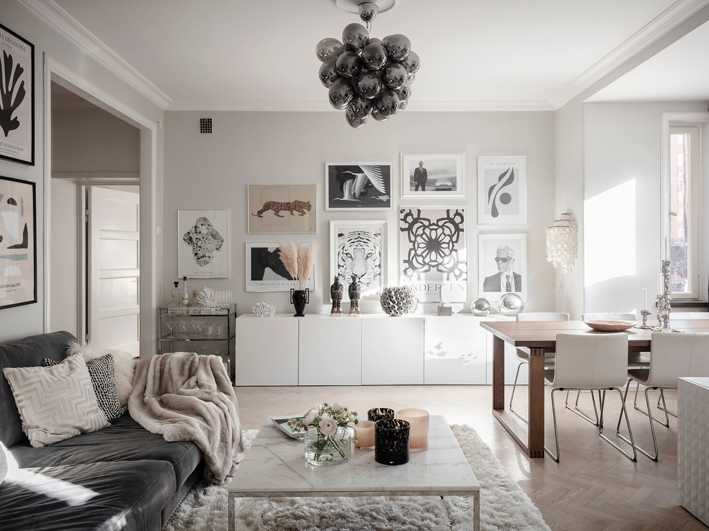 다채로운 액자와 오브제를 활용한 매력적인 공간 디자인이 돋보이는 멋스러운 ‘모던 하우스’가 시선을 모으고 있다. 스웨덴에 위치한 74m²(22평) 크기의 이 집은 1인 가구 혹은 2인 가구를 위해 디자인된 주거공간이다.
