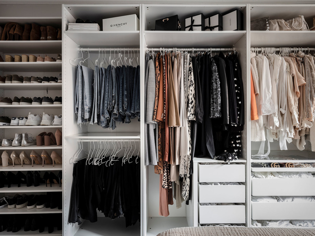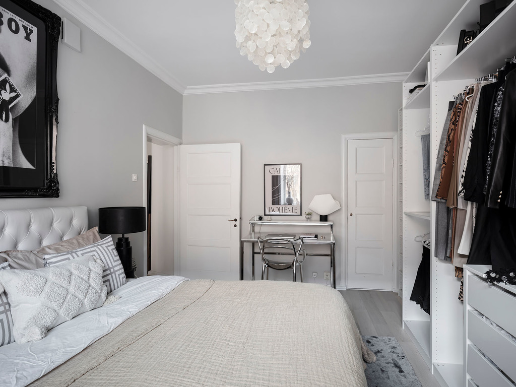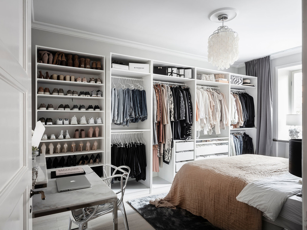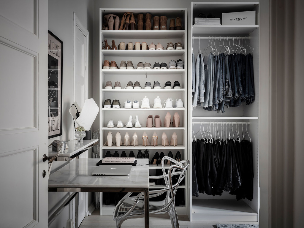 특히, 스타일리시한 집주인을 위해 설치된 대형 수납장은 의류, 신발, 가방, 액세서리 등을 깔끔하게 보관할 수 있도록 효율적으로 디자인되어 사용과 관리에 편리를 더하고 있다.