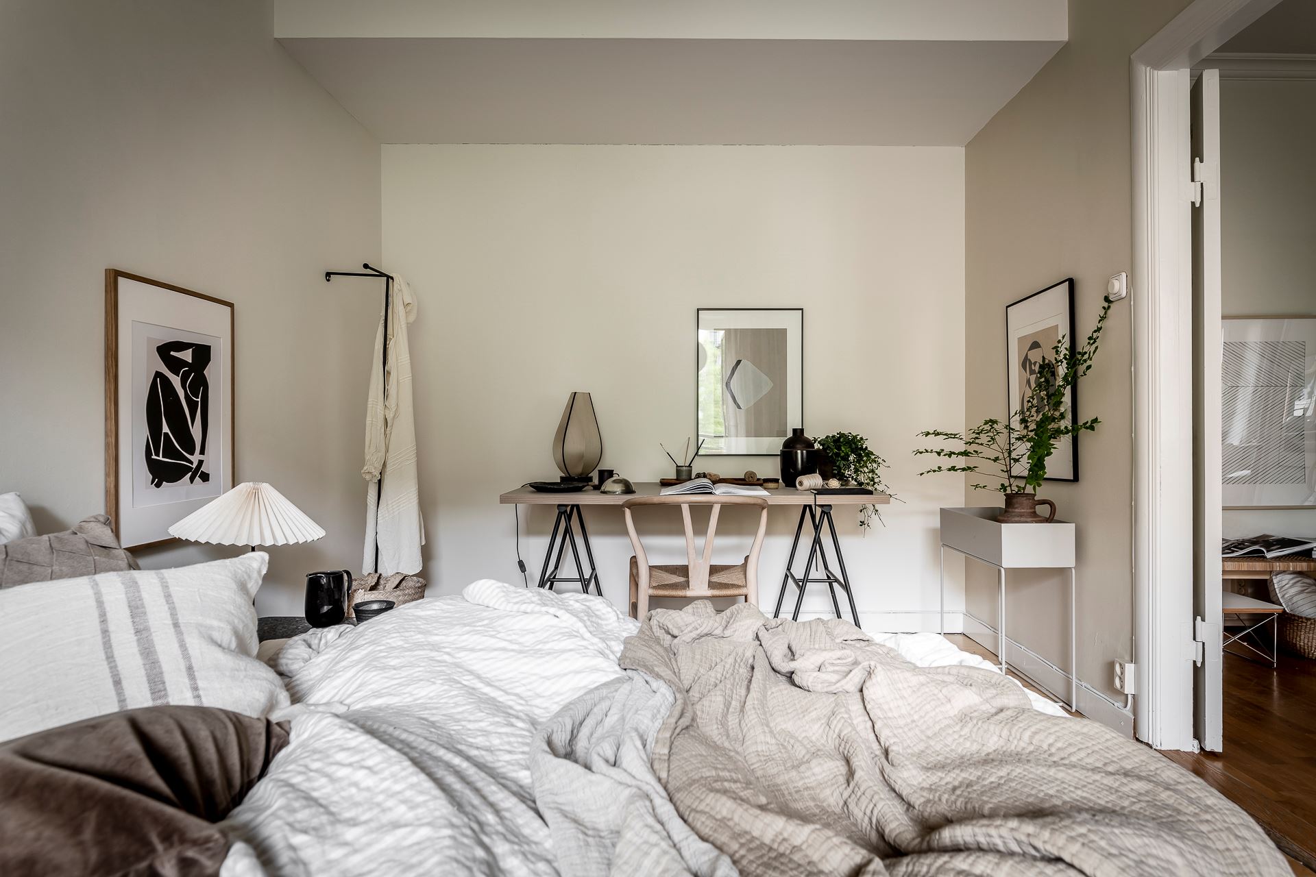 화이트와 베이지 톤 컬러로 은은하게 마감된 실내에 우드 플로어를 시공해 따뜻하고 아늑한 무드를 연출하고 있는 마스터 침실은 편안한 휴식과 수면은 물론 업무와 작업 공간을 겸하고 있는 위한 멋스러운 프라이빗 공간으로 스타일링되었다.