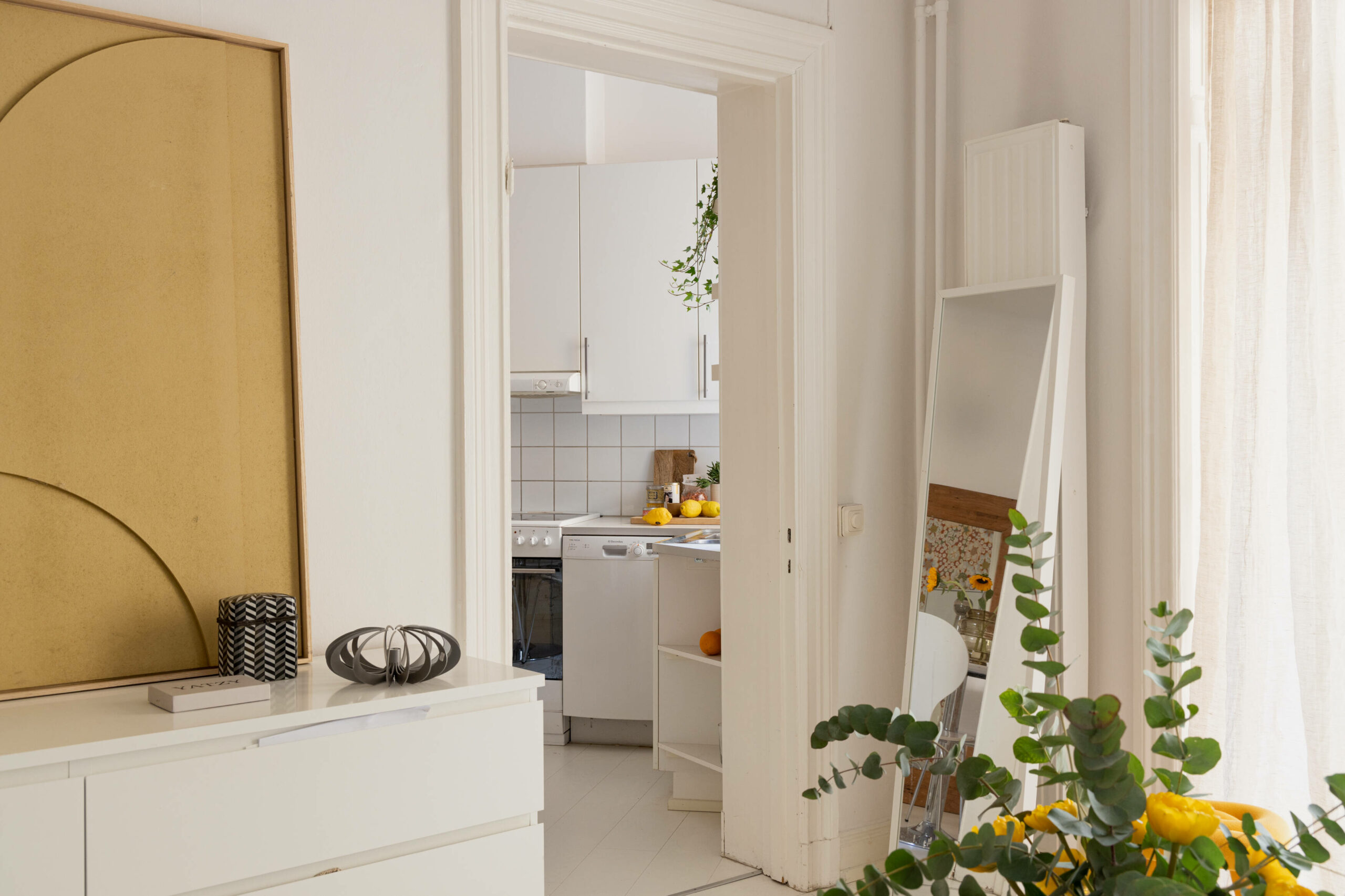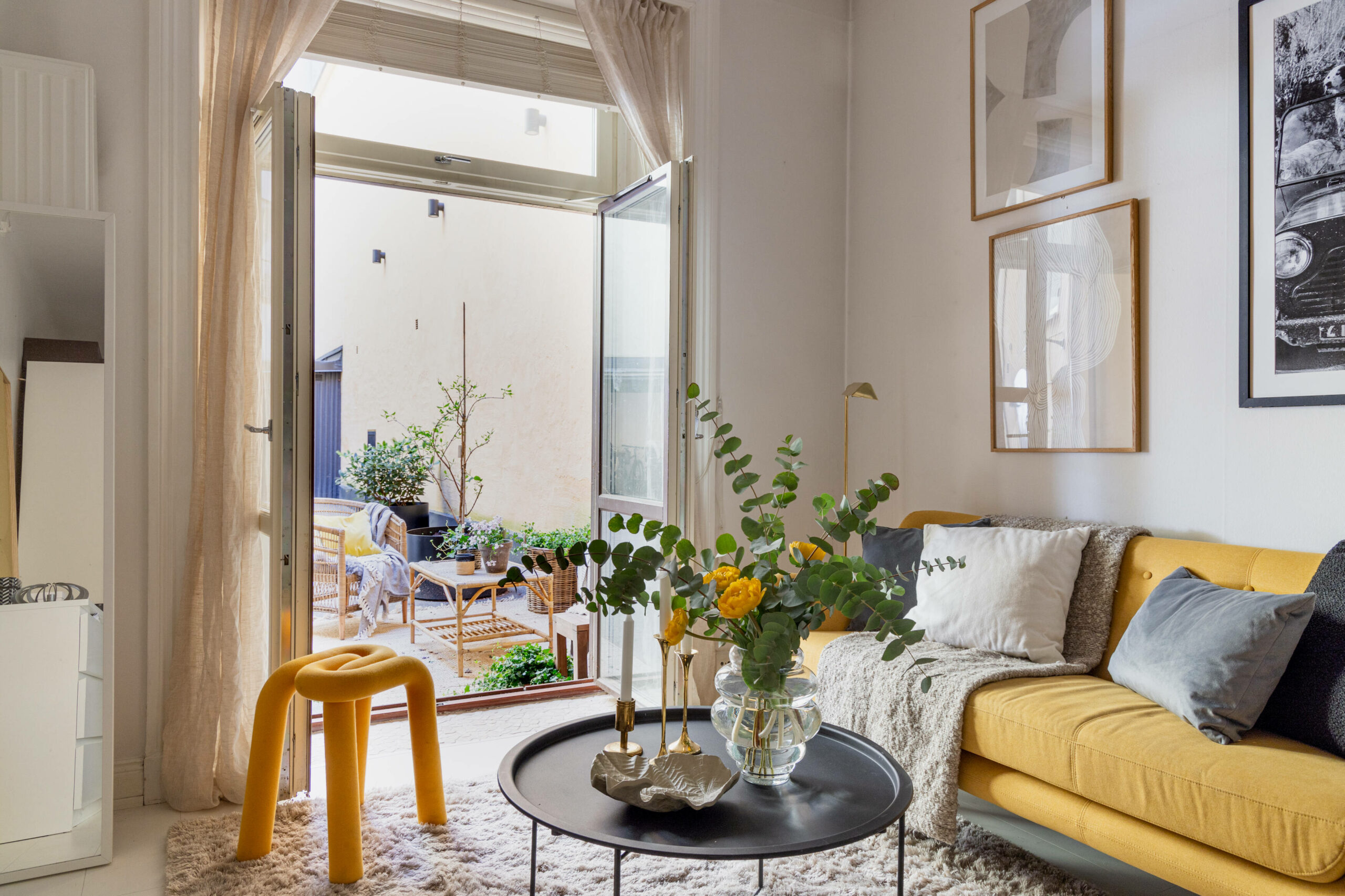 넓고 조용한 안뜰과 이어지는 1층 집의 장점을 잘 반영한 이 집은 거실, 주방, 침실, 욕실, 현관으로 구성된 소형 아파트로, 작은 집에 활용해 볼 수 있는 깜찍하고 예쁜 홈 스타일링을 잘 보여주고 있다.