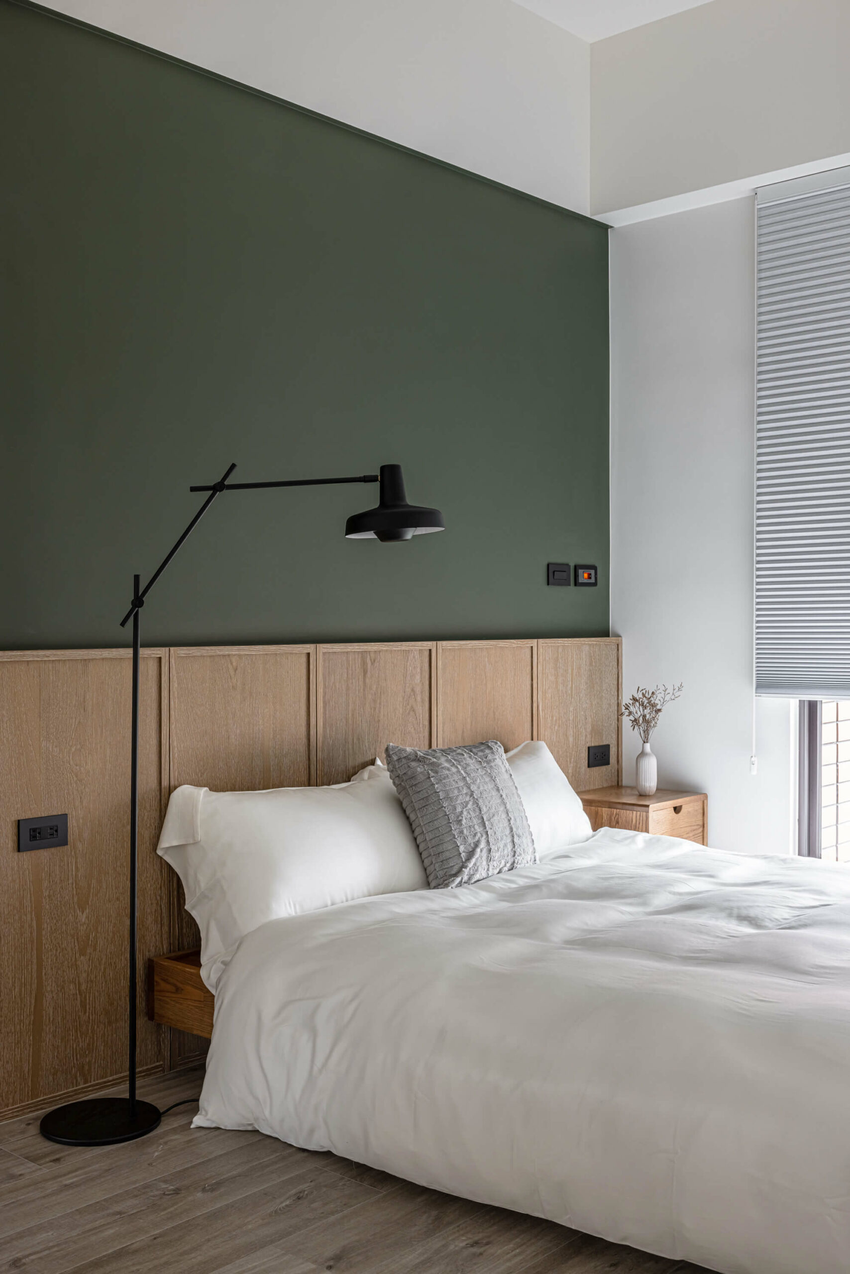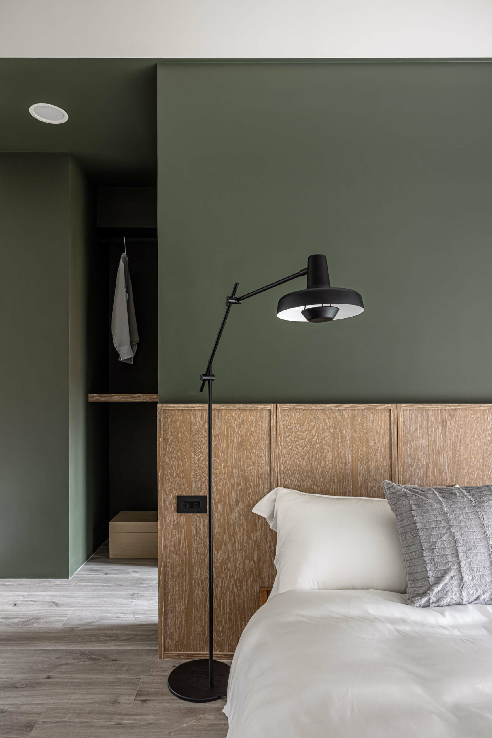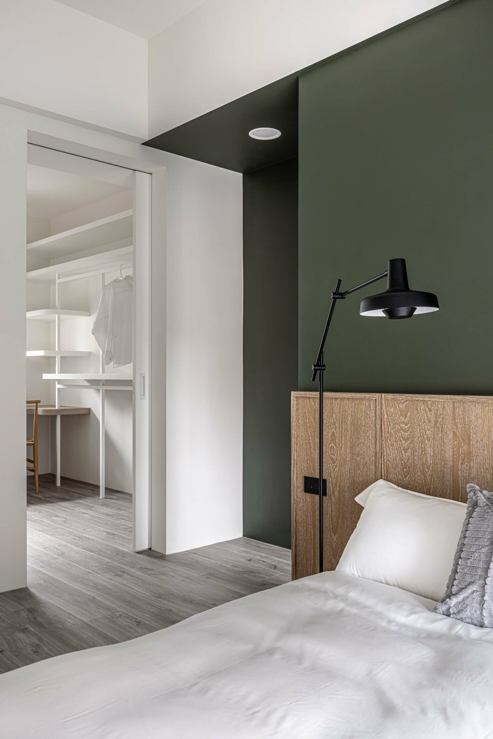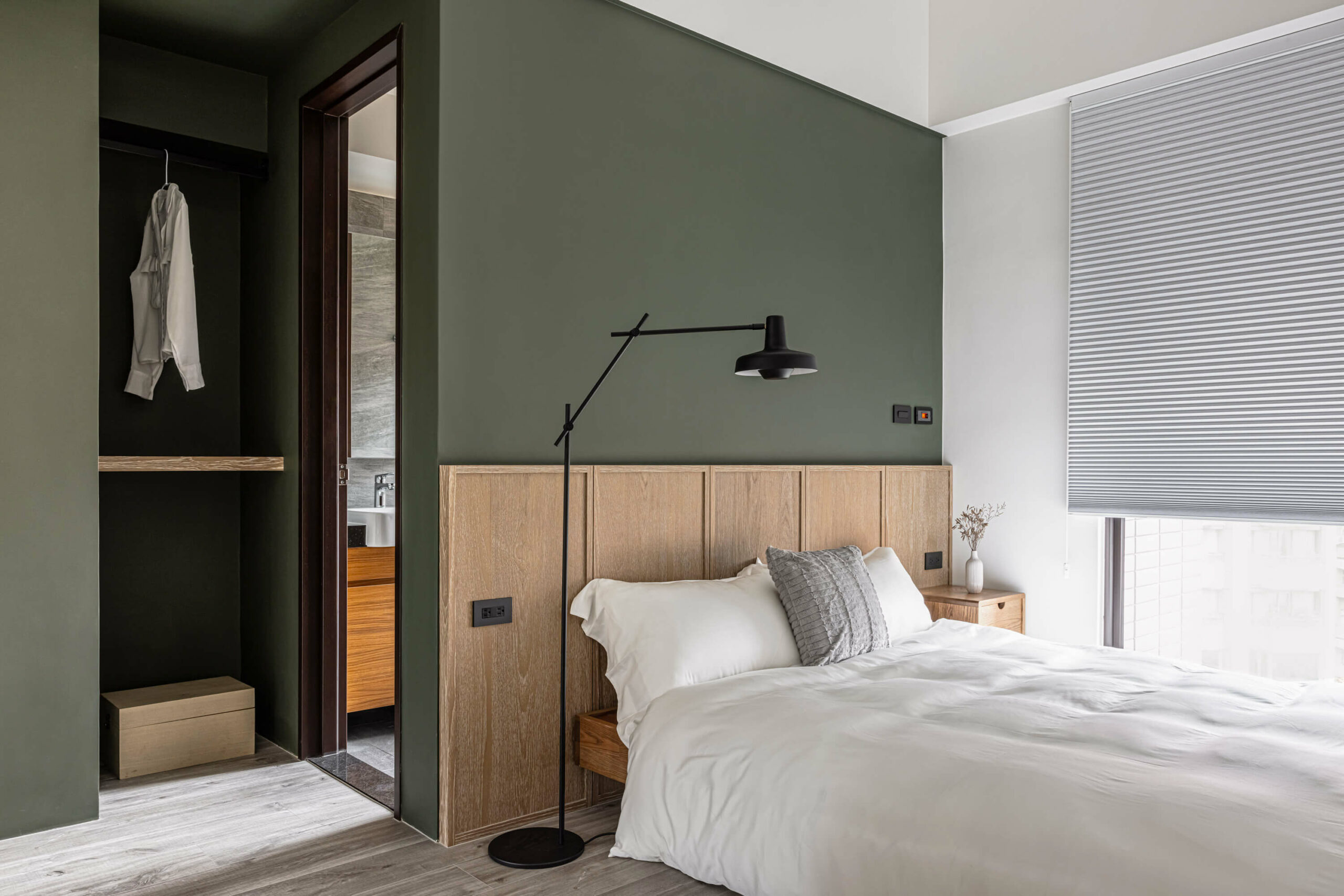 올리브그린 컬러와 우드가 멋지게 어우러진 부부 침실은 캐주얼하고 세련된 공간 스타일링이 돋보이는 프라이빗한 공간으로 전용 욕실과 드레스룸을 모두 갖춘 부부 침실을 선보이고 있다.