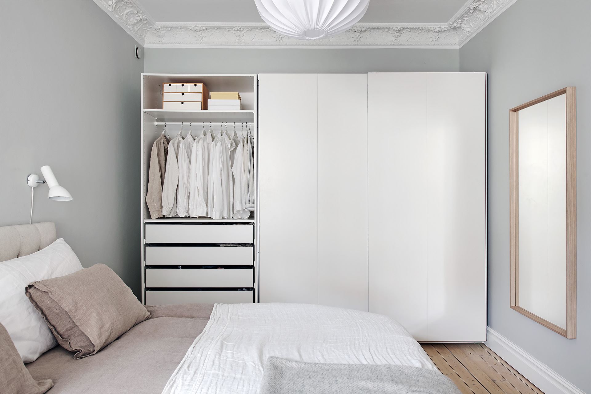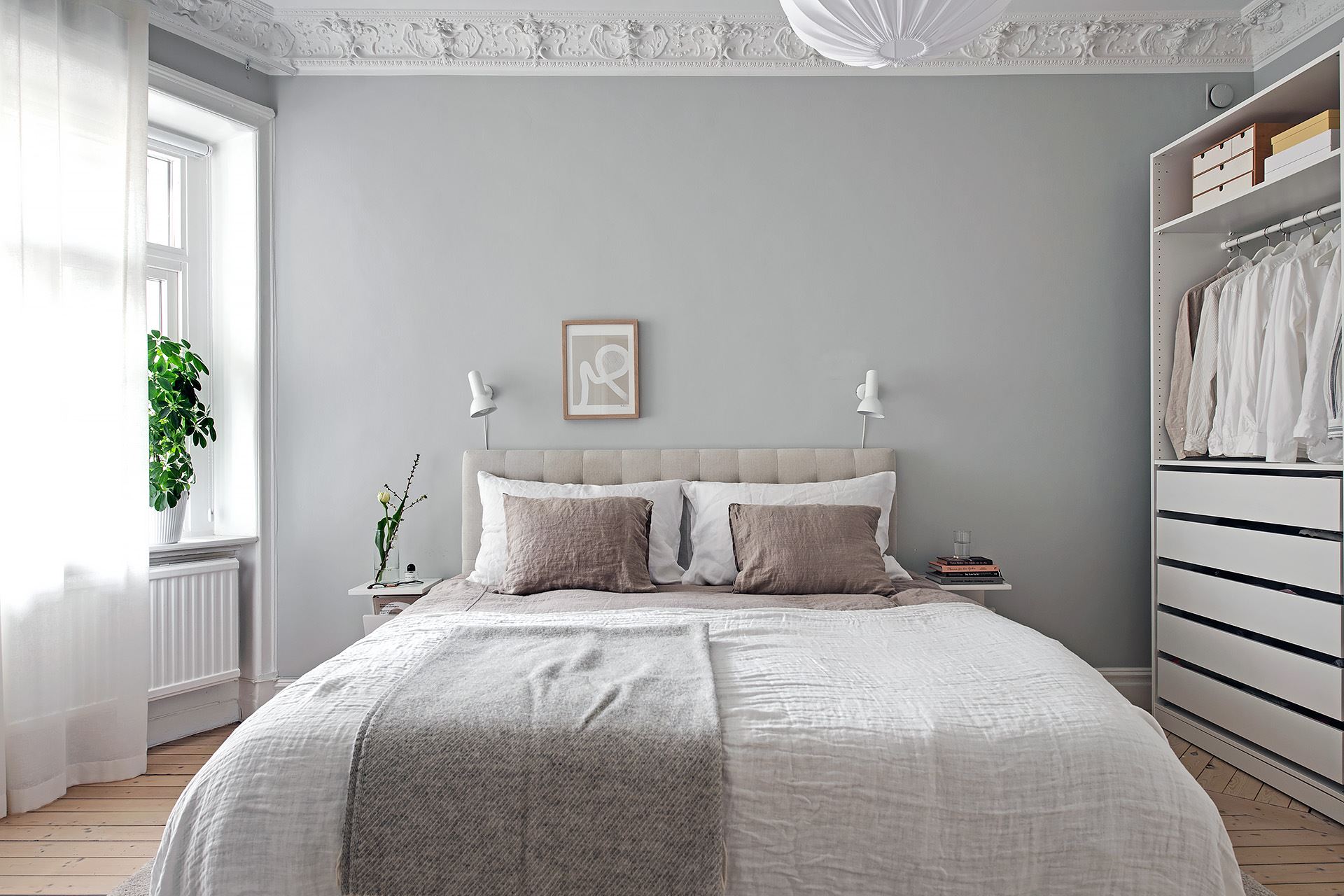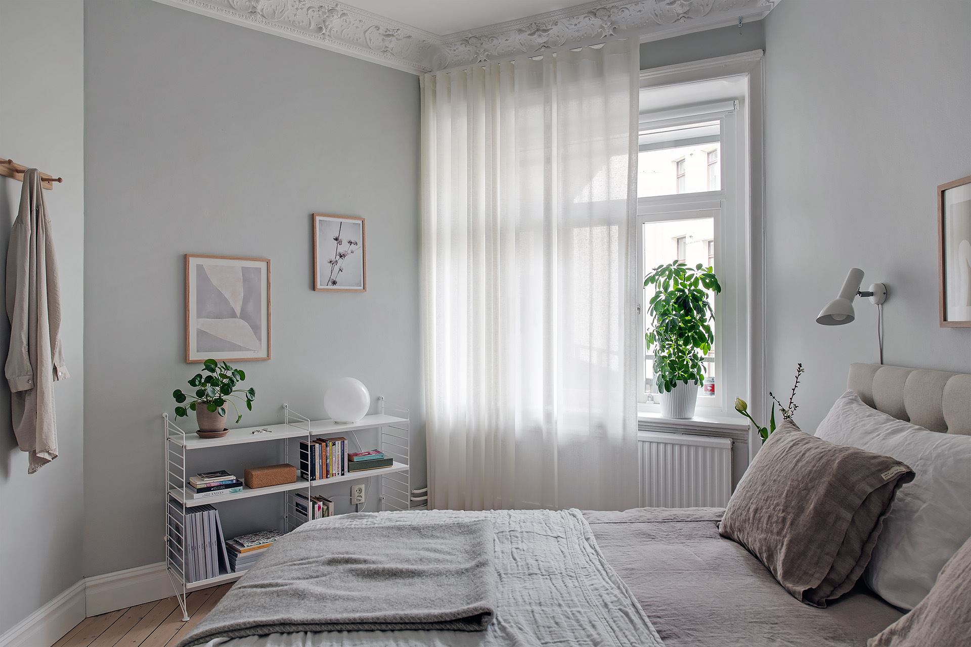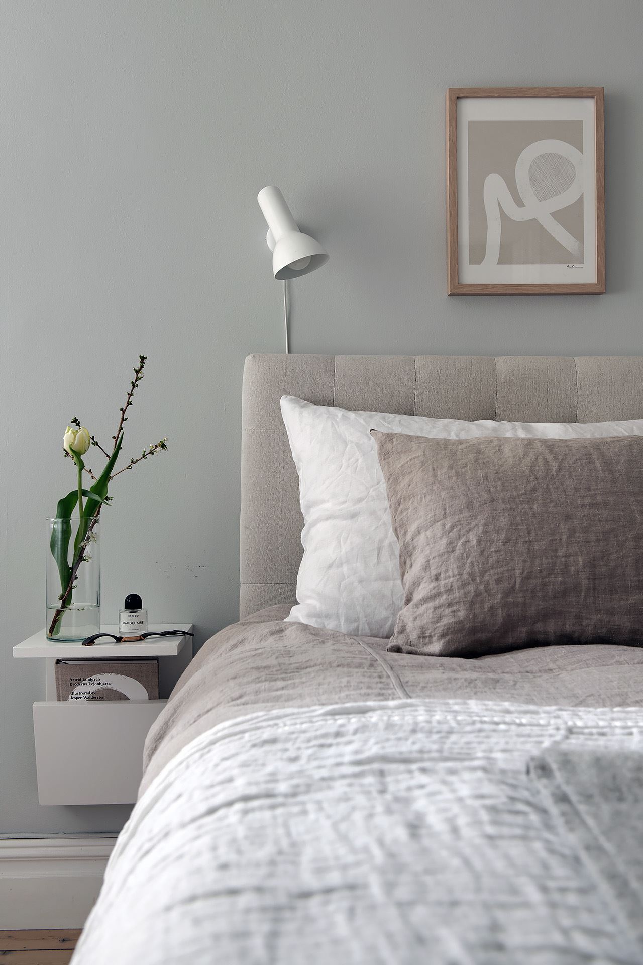 밝고 화사한 톤으로 꾸며진 침실은 단정하고 아늑한 북유럽풍 침실을 잘 보여주고 있다.