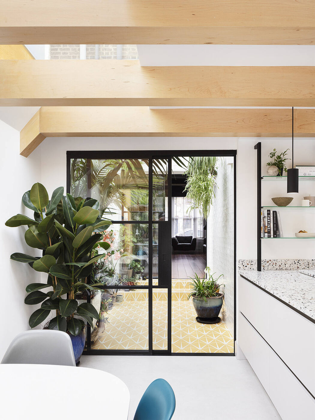 여유로운 일상을 즐길 수 있는 아름다운 주방 겸 다이닝 공간이 시선을 모으고 있다. 영국 런던에 위치한 오래된 단독주택의 일부를 증축, 리모델링해 만든 이 공간은 감각적인 홈 카페를 연상시키는 매력적인 인테리어가 특히 돋보인다.