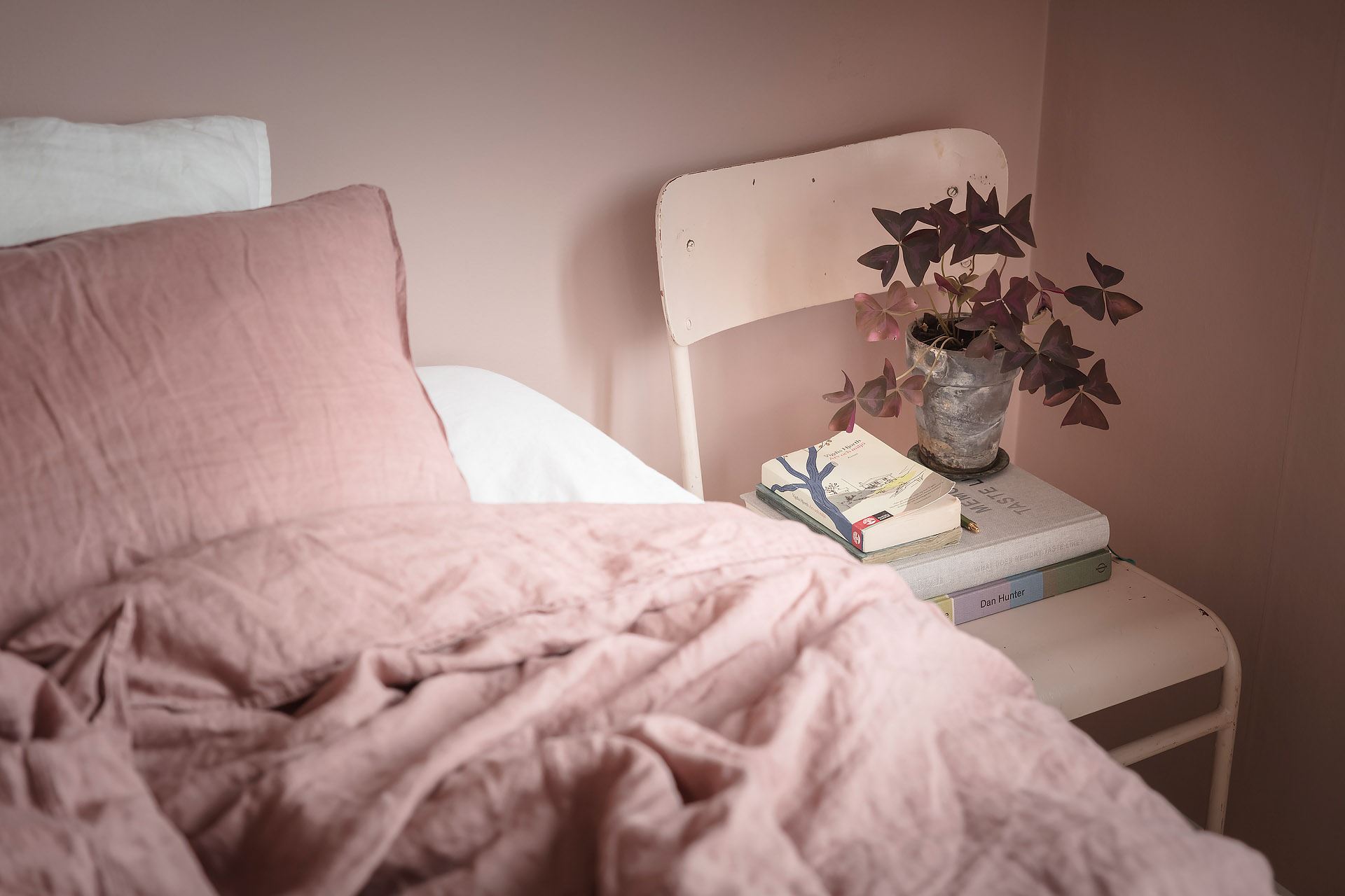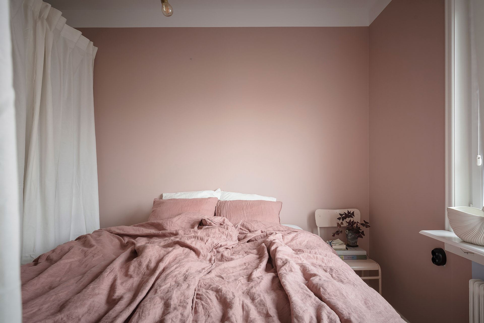 밝은 화이트와 은은한 핑크 톤 컬러를 조화롭게 사용해 우아한 분위기를 연출하고 있는 마스터 침실은 집주인의 취향을 느낄 수 있는 아름다운 프라이빗 공간으로 섬세하게 디자인되었다.