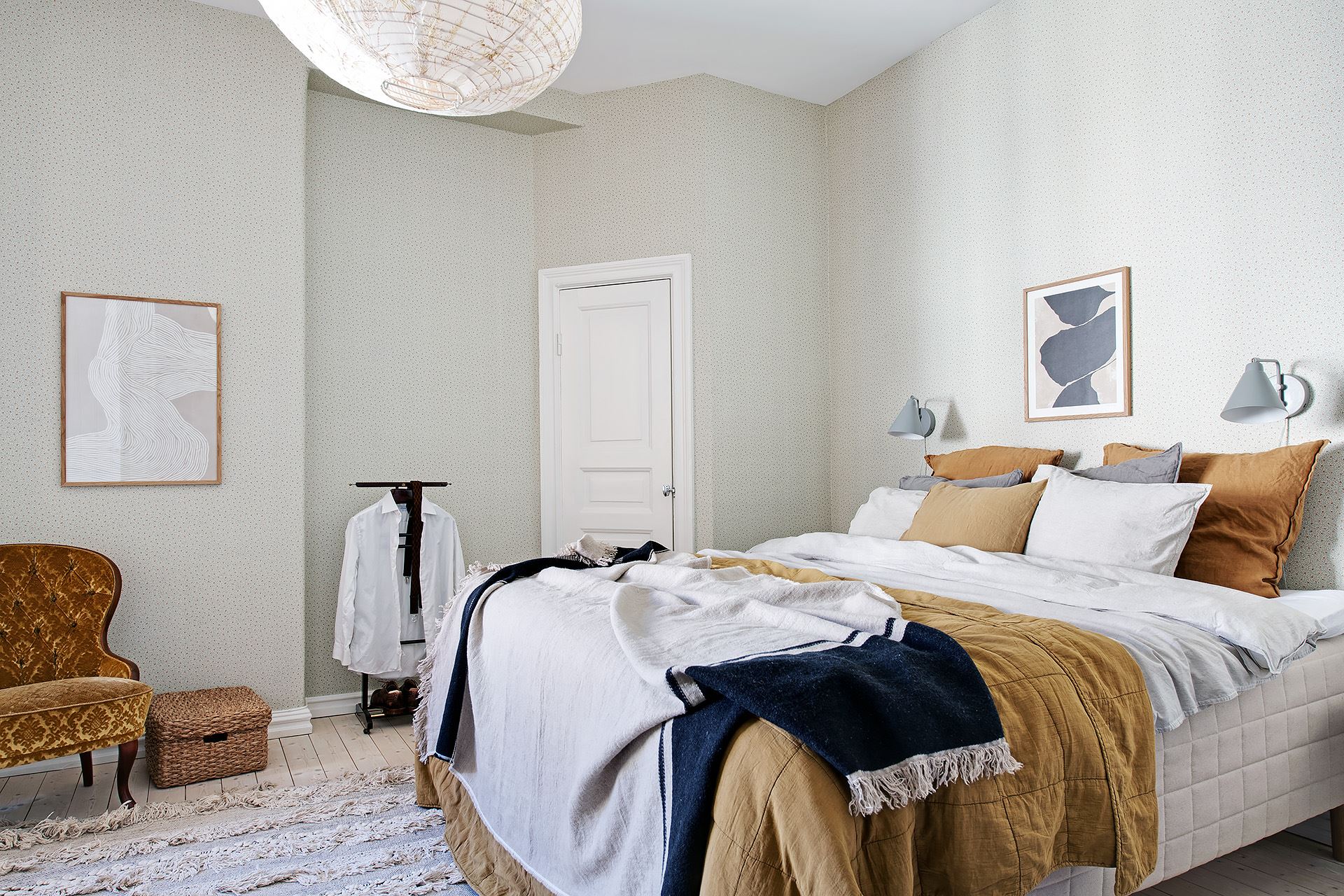 침대를 중심으로 협탁, 라운지체어, 티 테이블 등이 단정하게 배치된 부부 침실의 경우 조명, 오브제, 화초, 액자들로 섬세한 포인트를 줘 따뜻하고 편안한 프라이빗 공간을 완성하고 있다.