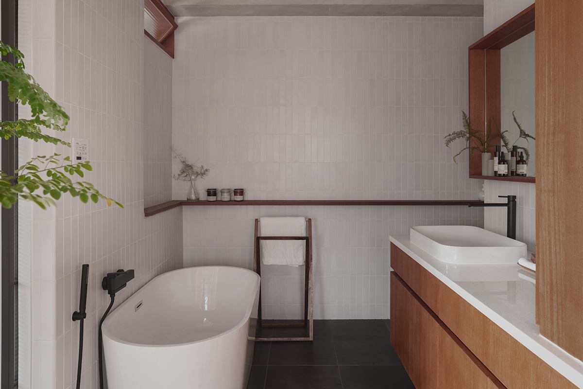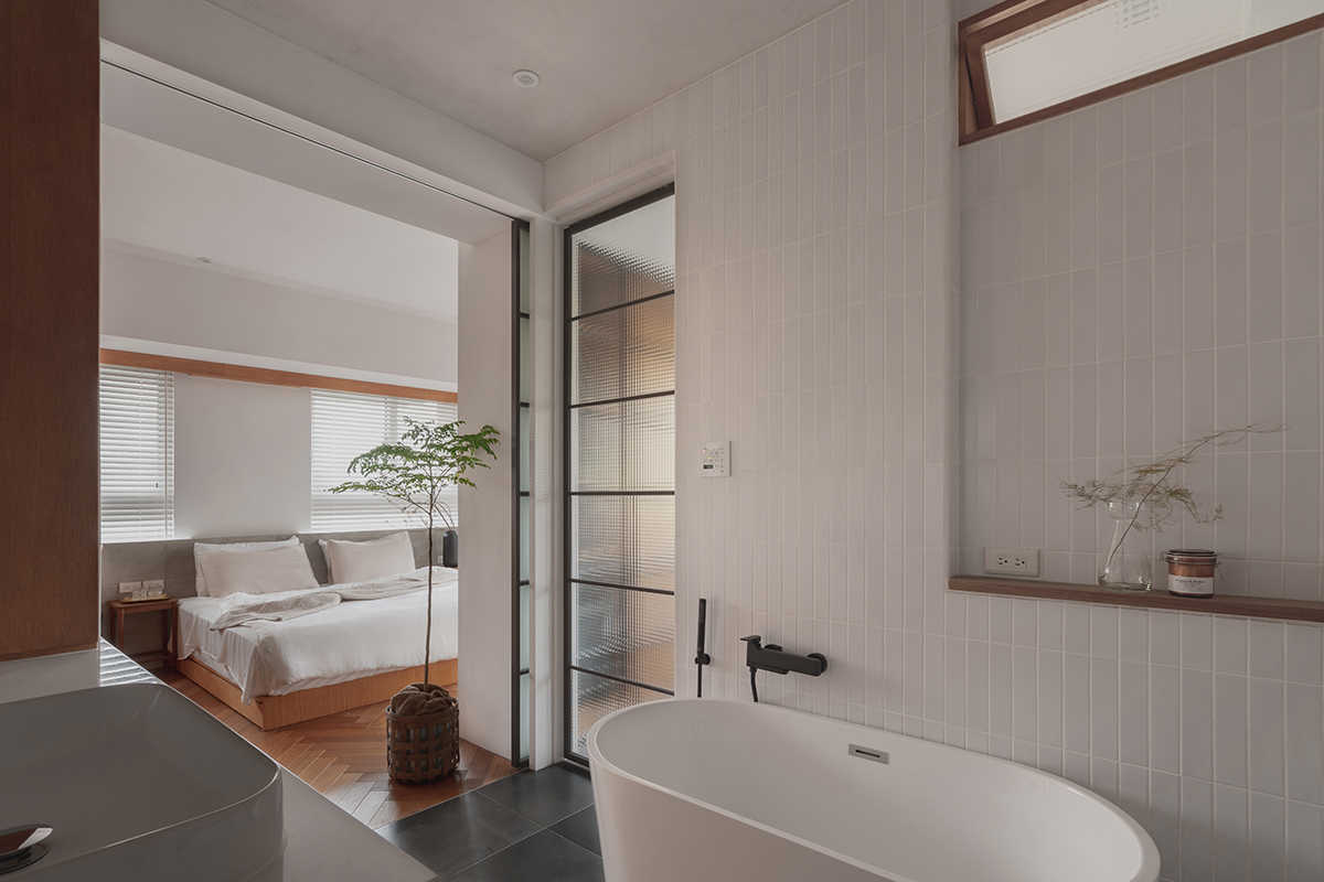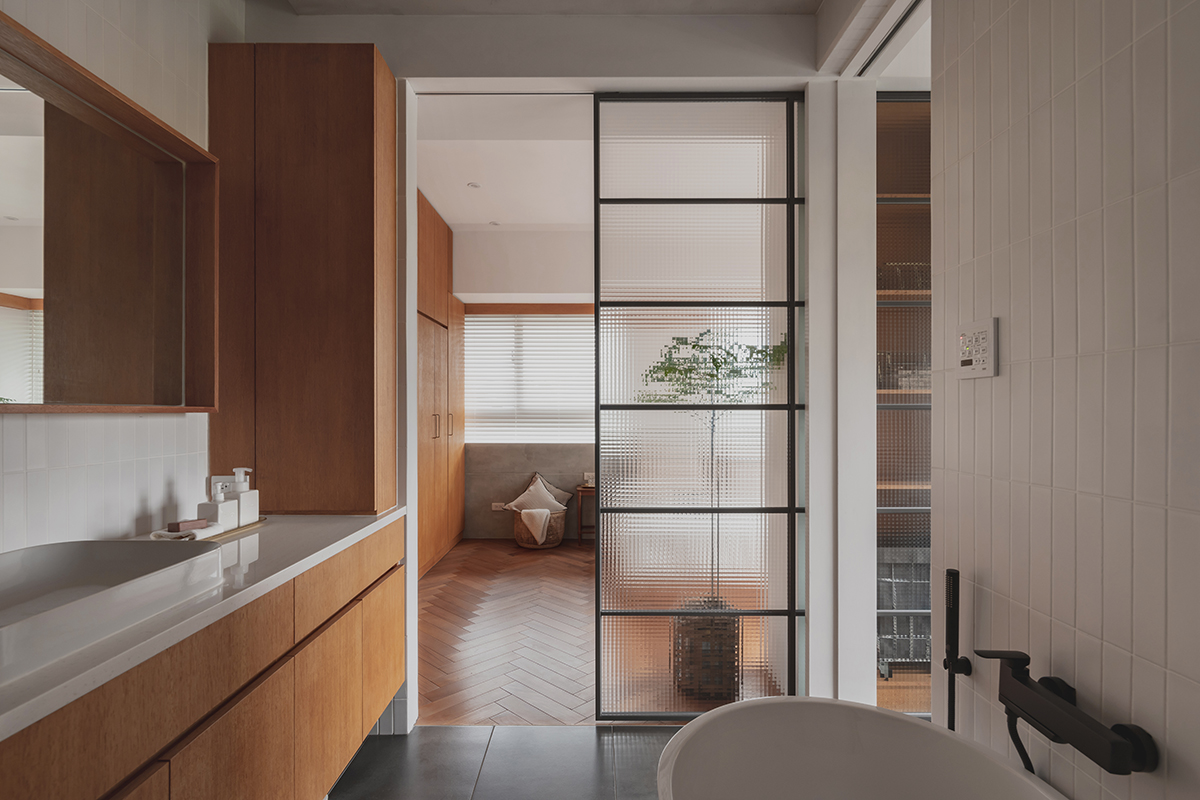 일본 온천 호텔에서 영감을 받아 디자인된 마스터 전용 욕실은 화장실 공간 없이 세면공간, 샤워공간, 목욕공간이 깔끔하게 구분된 넓은 건식 욕실로 부부만을 위한 쾌적하고 여유로운 힐링 욕실 공간을 선사하고 있다.