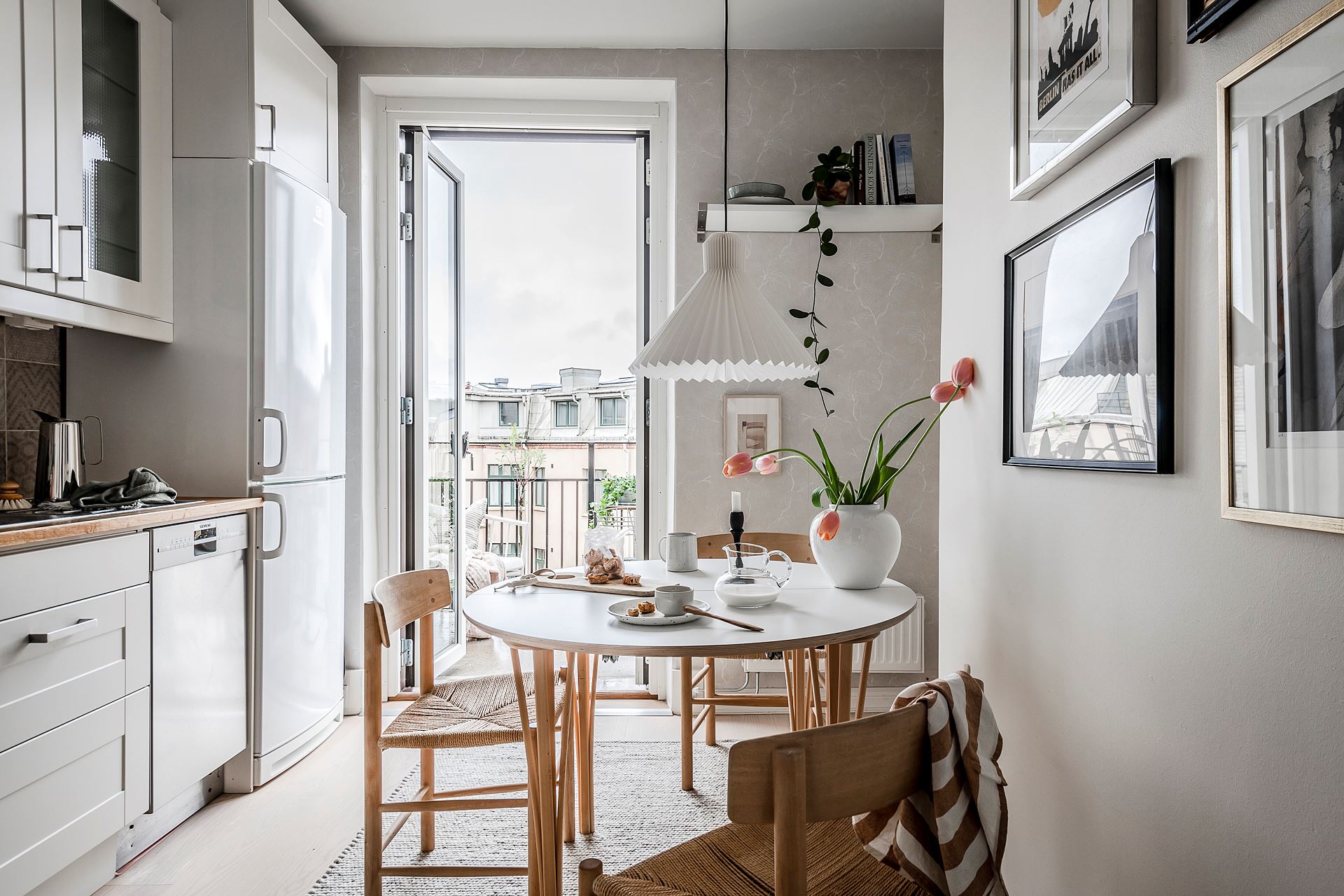 시원하게 탁 트인 발코니와 자연스럽게 이어지는 주방 속 작은 다이닝룸은 식사와 티타임을 즐길 수 있는 예쁜 홈 카페 스타일로 아기자기하게 꾸며져 일상의 여유와 낭만을 더하고 있다.