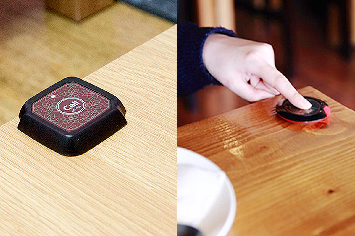 테이블에서 벨을 누르면 어느 자리에서 부르는지 특정할 수 있어 일하는 사람도 편리하고, 손님도 번거롭게 말로 부르지 않아도 돼서 편리하죠.