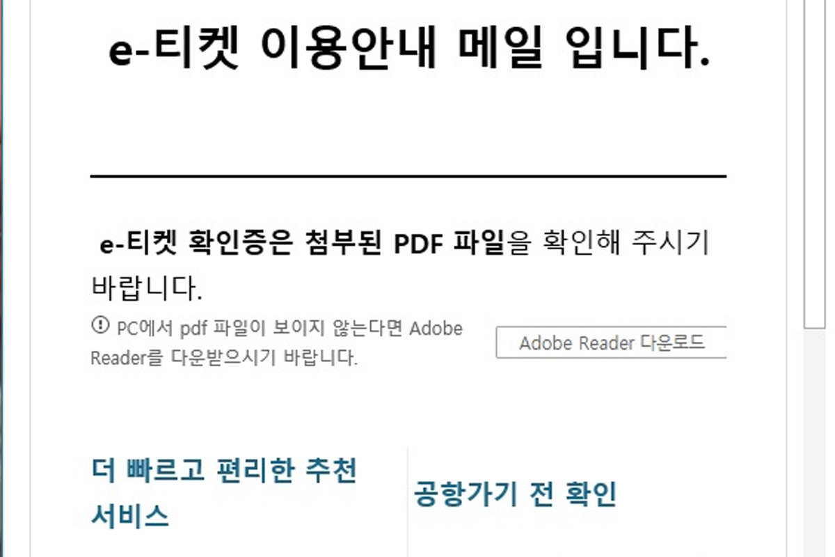 메일 제목은 ‘항공권 결제가 완료되었습니다~공항 가기 전 확인’으로 확인됩니다.