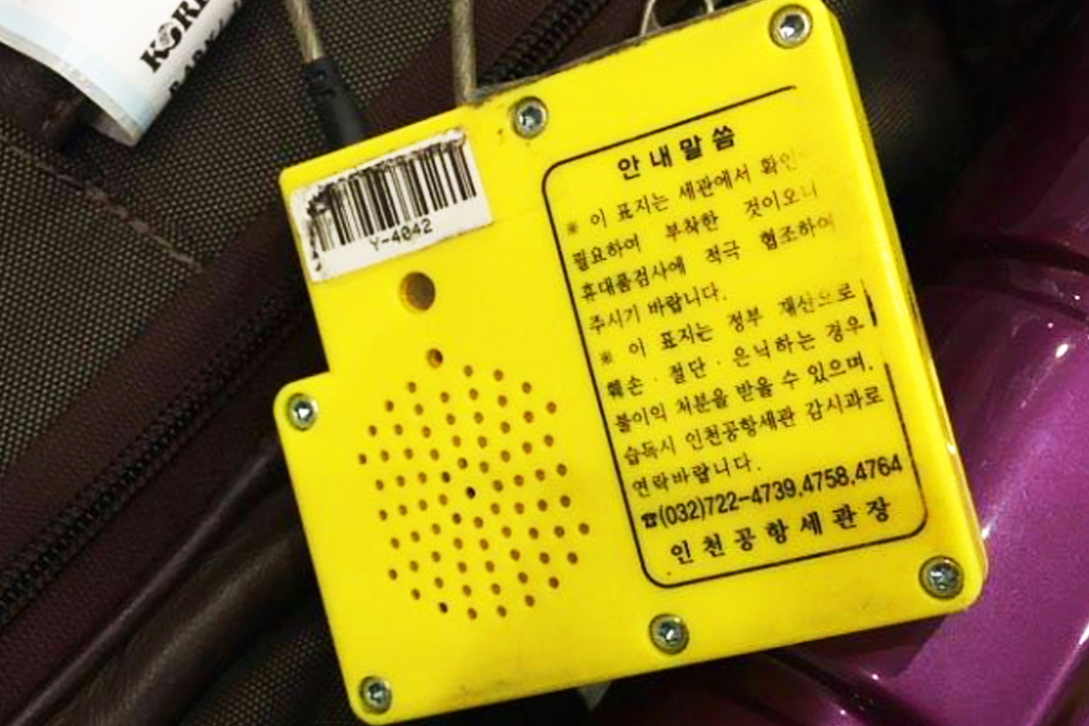 X레이 검사 후 의심 가는 물품이 담긴 수하물에는 노랑과 파랑, 주황, 빨간색 등 총 네 종류의 전자태그까지 부착됩니다.