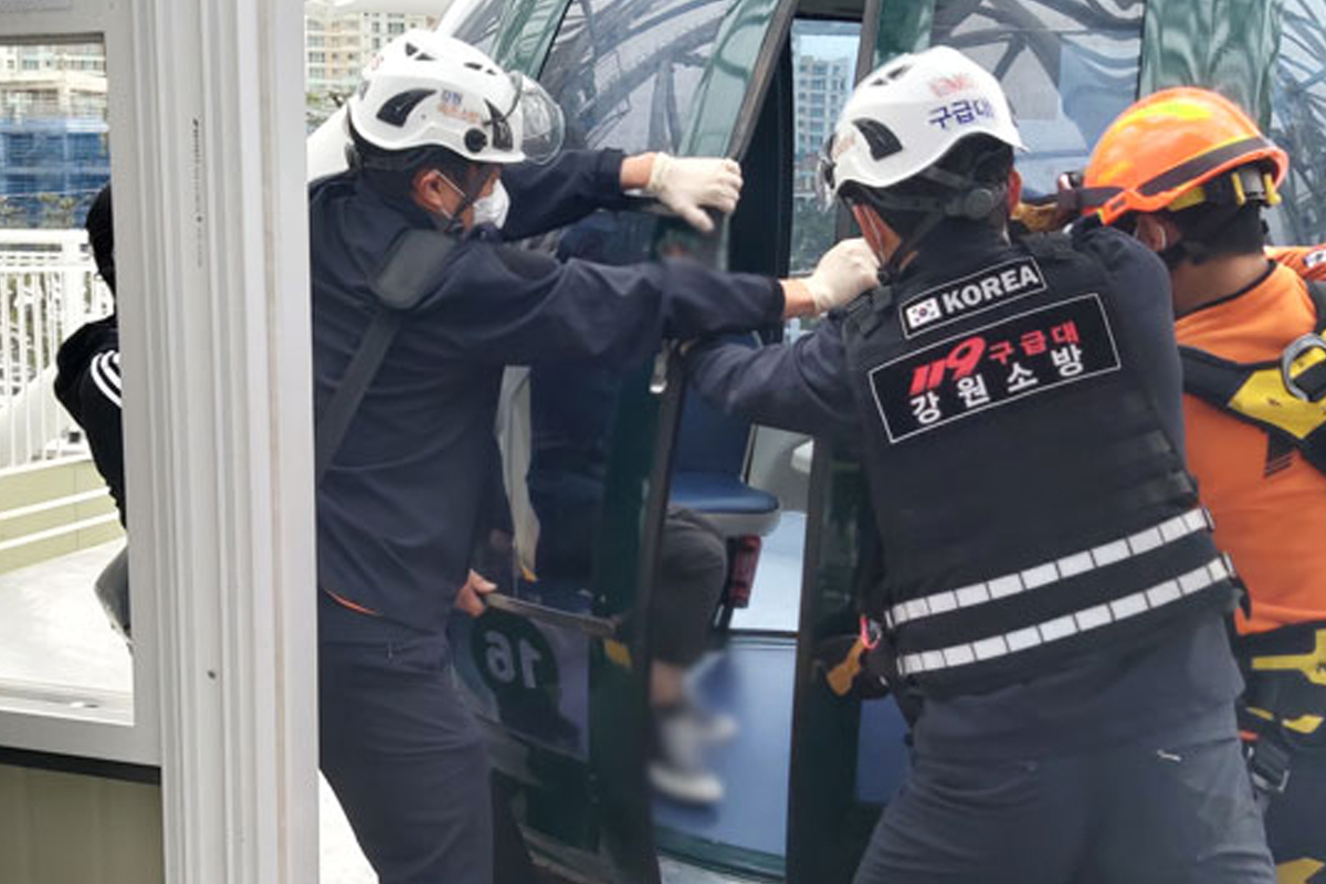 일부 캐빈의 문이 열리지 않아 119 구조대가 출동했는데요. 문을 강제로 연 후 탑승객 26명을 안전하게 구조했습니다.