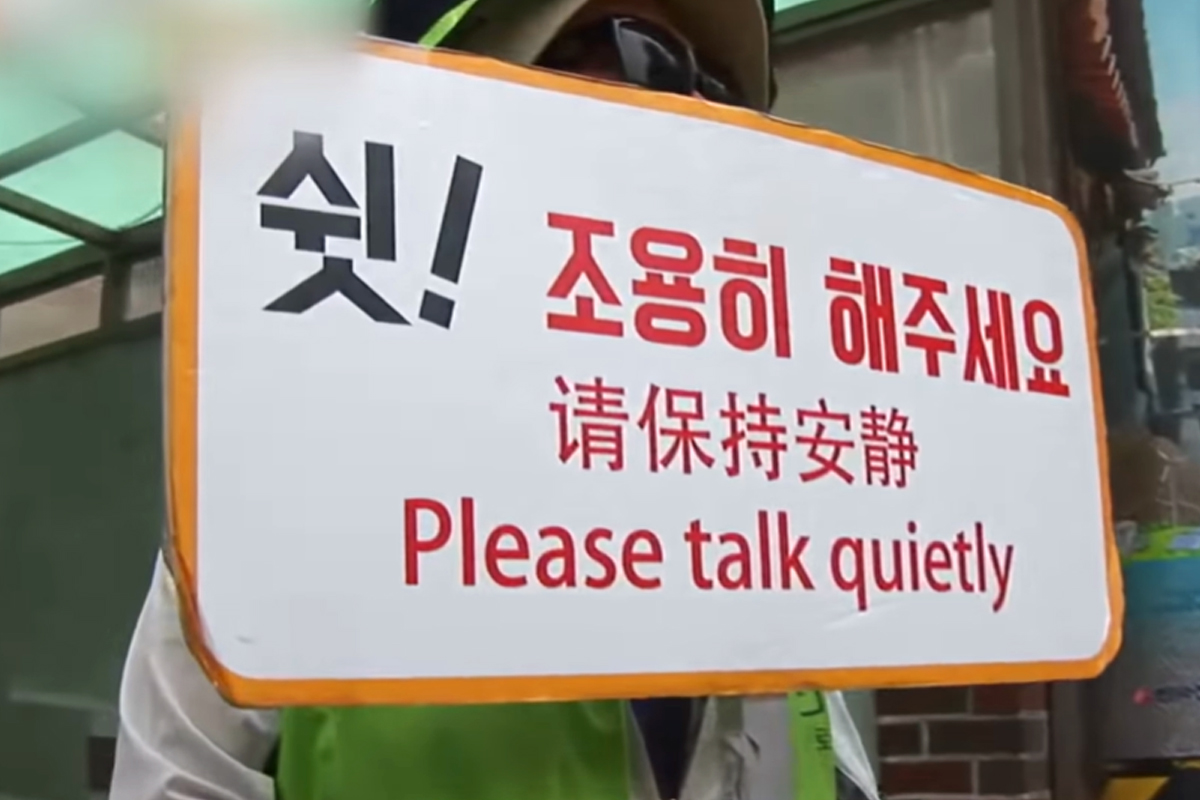 북촌한옥마을에는 관광객을 통제하는 북촌마을지킴이가 조용히 해달라고 요청해도 여전히 소란을 멈추지 않았습니다.