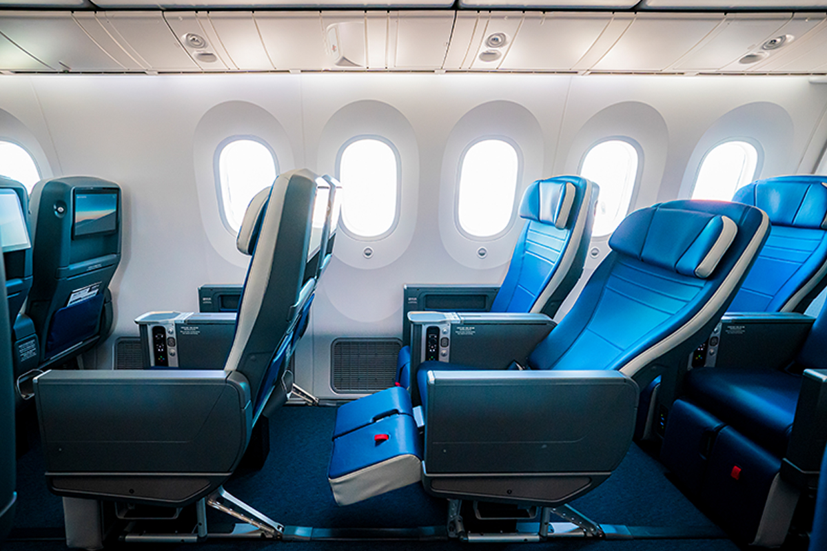 퍼스트 클래스나 비즈니스 클래스를 두고 있지 않지만, 프리미엄 이코노미석을 갖추고 있습니다.