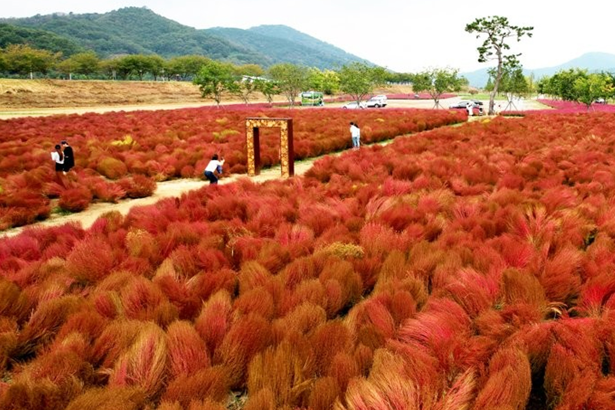 댑싸리는 분홍색과 빨간색, 주황색으로 물들어 가을의 정취를 즐길 수 있습니다.