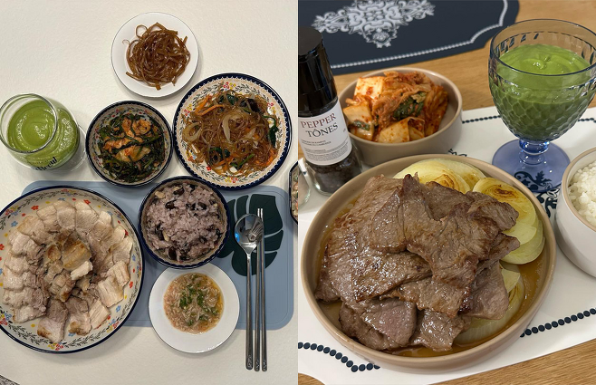 냉동 삼겹살은 물론, 보쌈에 잡채 등의 메뉴에 최근에는 채끝살 구이를 먹었다는 사실을 공개하기도 했습니다.